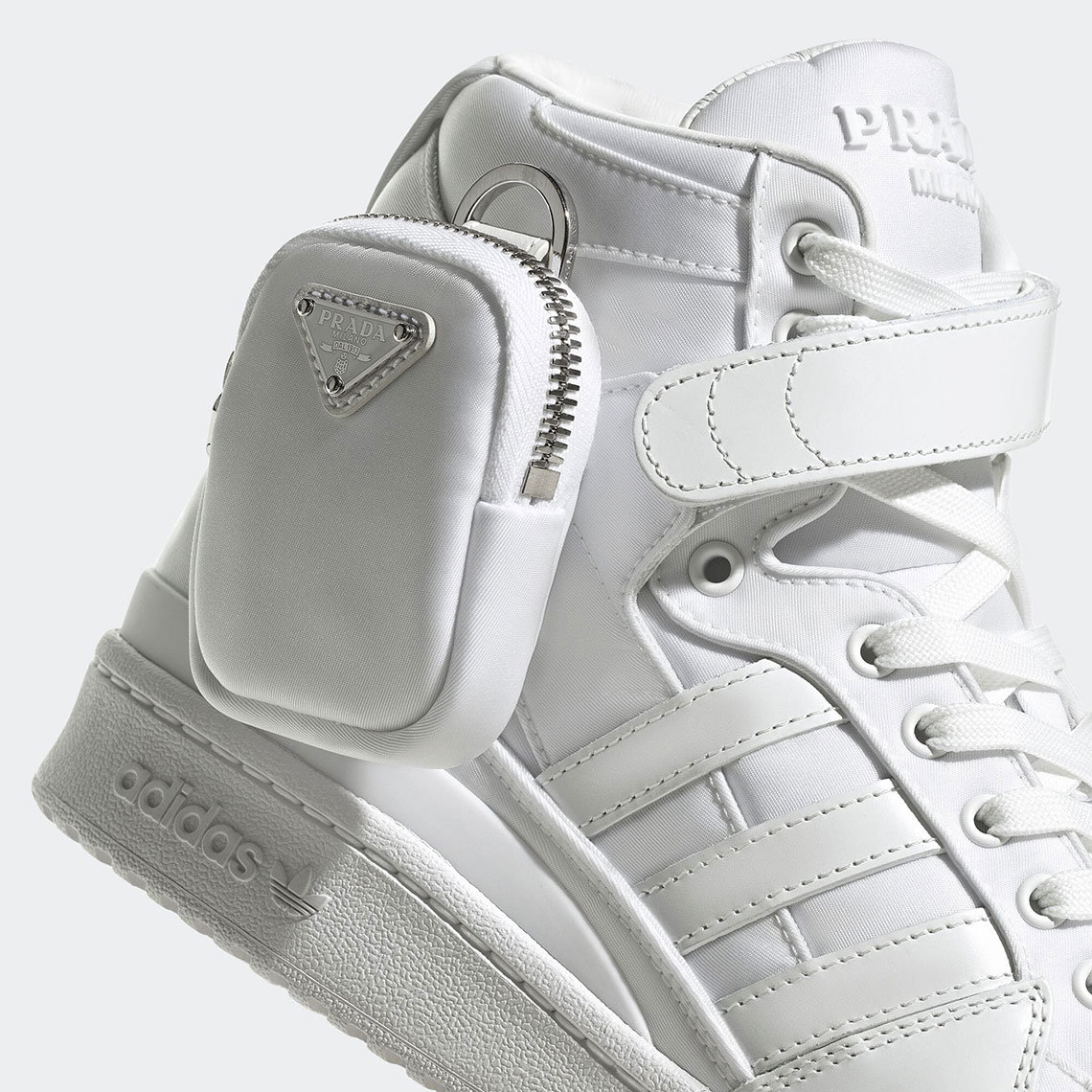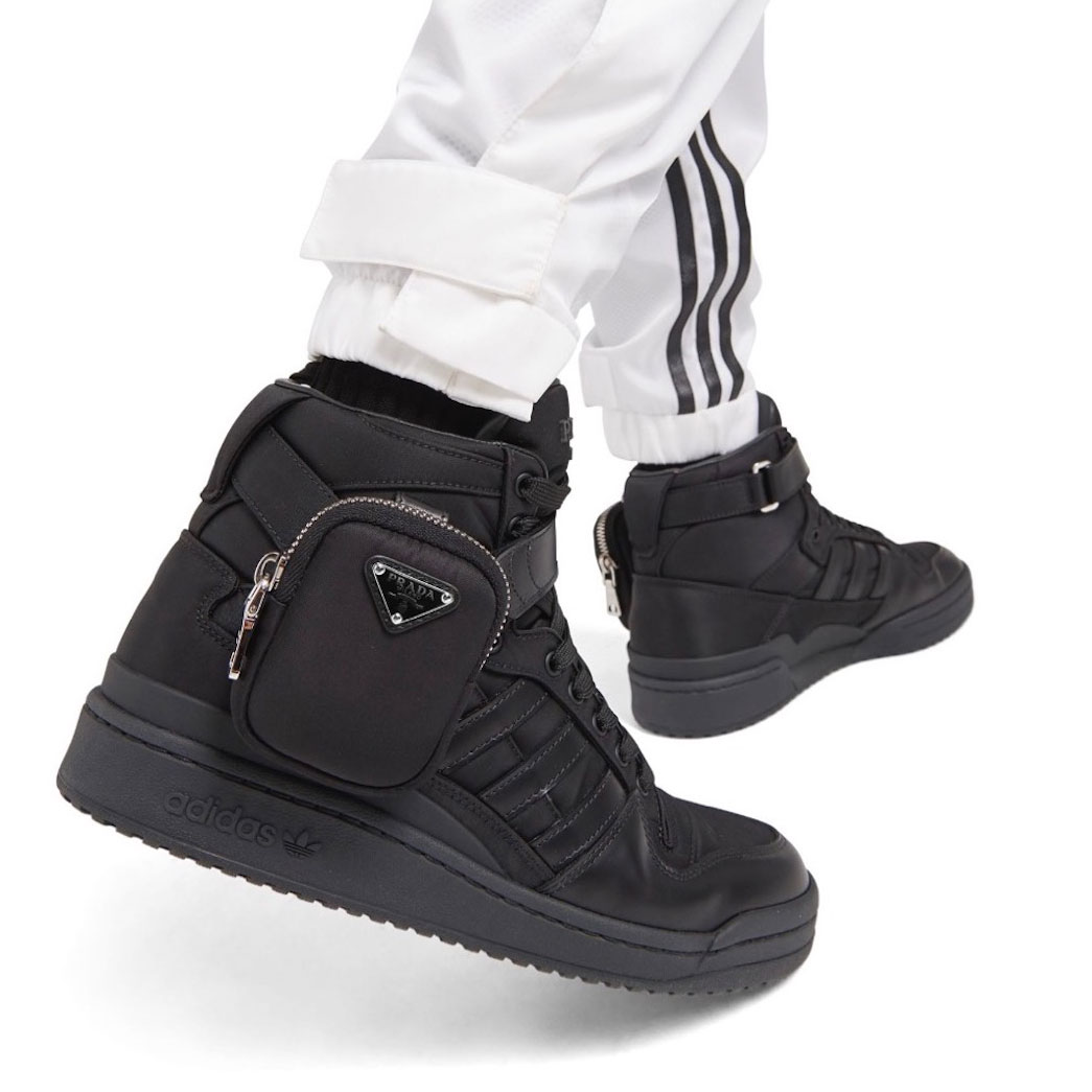 Như hai dự án trước, Prada và Adidas tiếp tục chọn giày thể thao để làm tâm điểm của màn bắt tay khai niên 2022. Dự án này làm mới mẫu giày Forum của Adidas, ở cả phiên bản cổ cao (Hi) và cổ thấp (Low), với chất liệu da thuộc và gam màu thuần trắng, thuần đen tối giản.