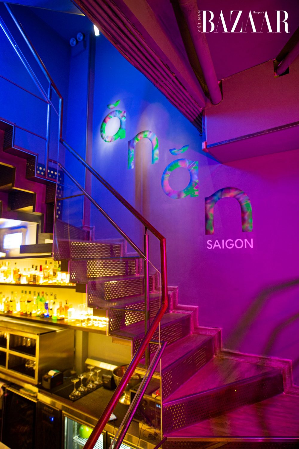 Đầu tiên, khi bước vào khu vực ăn uống ngay tầng trệt, thực khách có thể chứng kiến ngay diện mạo mới của Anan Saigon. Không gian được phủ lên ánh đèn vàng ấm cúng và sang trọng. Nghệ sỹ làm cocktail Richard Fawcett cũng là người đã vẽ nên bức tranh Panorama toàn cảnh Sài Gòn một cách chi tiết.