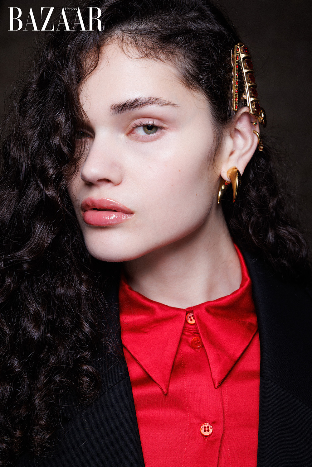 Nổi bật trong xu hướng lần này là những chiếc kẹp tóc bản lớn, phủ ánh kim hoặc đính pha lê lấp lánh, mang đến vẻ sang trọng cho mọi kiểu, từ tóc búi gọn gàng, sóng xoăn tự nhiên đến mái tóc ướt bóng. Chúng được cài lệch, theo cặp hoặc thậm chí chồng lớp như tuyên ngôn của phong cách “more is more” (chủ nghĩa tối đa, càng nhiều càng đẹp).