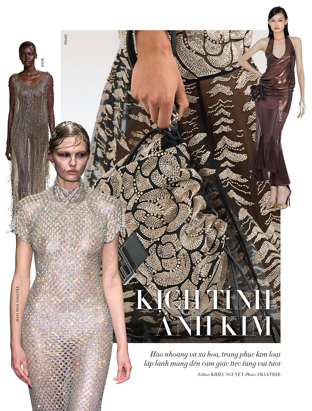 Tạm gác lại phong cách tiết chế tinh giản, thời trang mùa này hướng tới những thiết kế bùng nổ ánh sáng, nơi ánh kim không còn là điểm nhấn mà trở thành tuyên ngôn chính. Ánh kim lúc này tôn vinh vẻ đẹp rực rỡ, táo bạo và đầy quyền lực.