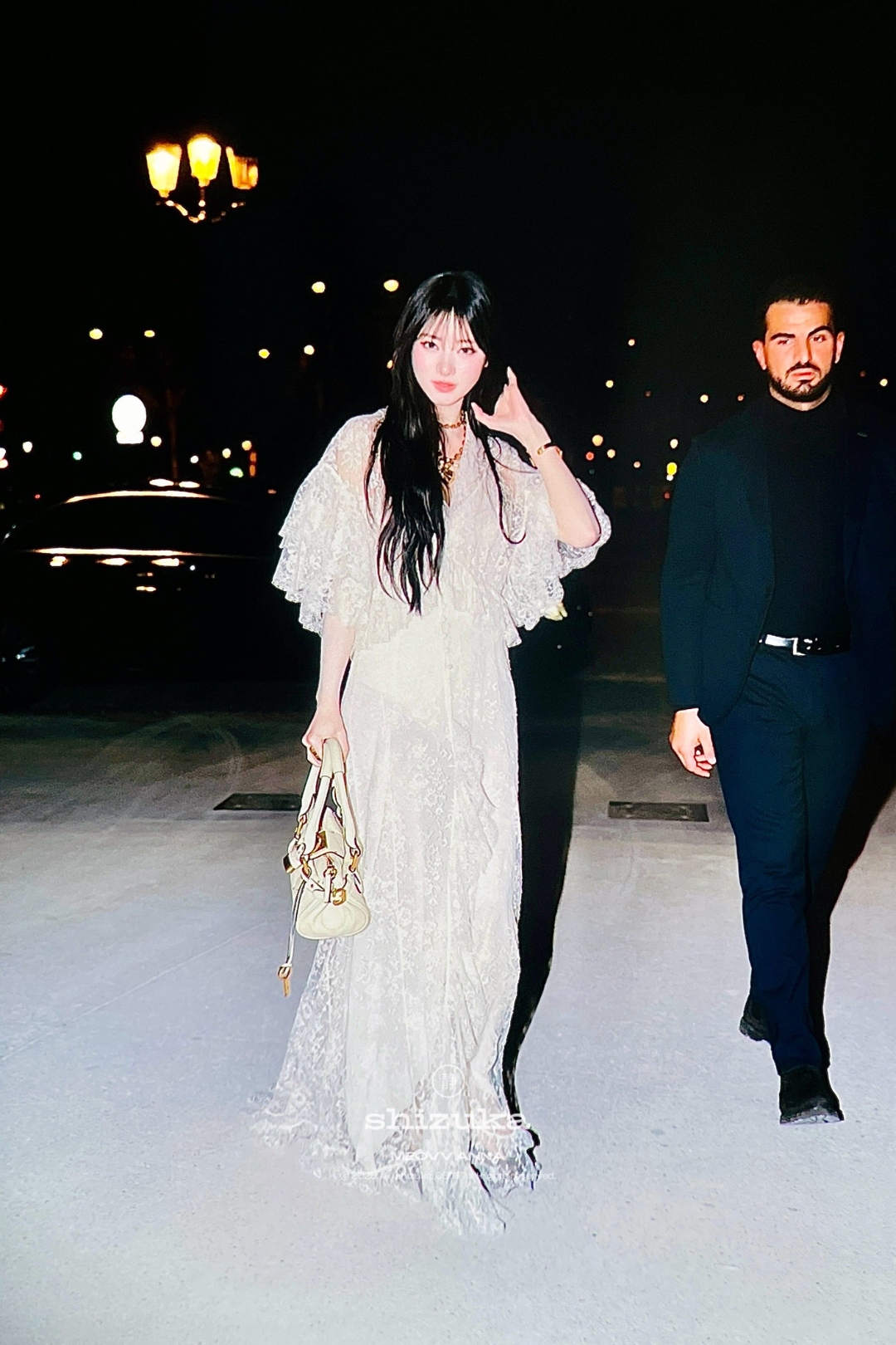 Trong chuyến công du Paris cùng Chloé, Anna không chỉ ghi điểm với tạo hình dự show. Ngay sau khi khuấy đảo show diễn với tạo hình nổi bật tuyệt đối giữa dàn khách mời phương Tây, ngôi sao châu Á dự hậu tiệc với một thiết kế từ BST Thu Đông 2025. Chiếc váy maxi đại diện cho phong cách bohemian lãng mạn của Chloé, trong sắc trắng khiến Anna lôi kéo toàn bộ sự chú ý về phía mình.