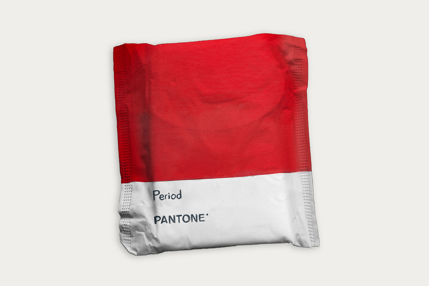 Ảnh thiết kế gói gọn màu đỏ kinh nguyệt của Pantone trên băng vệ sinh. Ảnh: Katty Huertas / TODAY / Getty Images