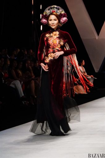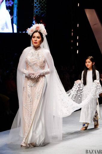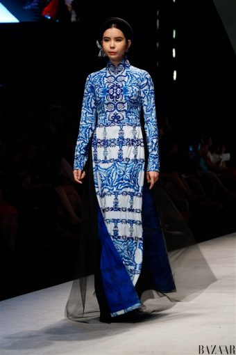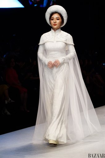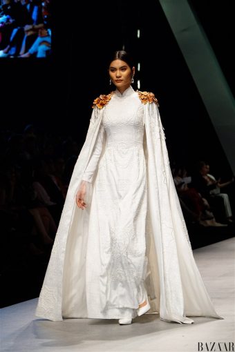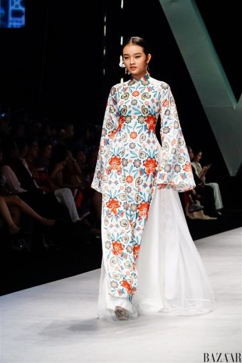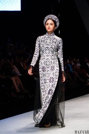Bảo Bảo thể hiện sự tinh tế trong cách lựa chọn họa tiết và kết hợp trên một tổng thể hài hòa. Tà áo dài Việt được lưu giữ vẻ truyền thống nhưng vẫn dung hòa được tính hiện đại về thị giác. Những mảng họa tiết gạch bông được thương hiệu Bảo Bảo House đính kết thủ công tỉ mẩn từng hạt cườm; mang lại sự nổi bật và ấn tượng cho “Heritage”.