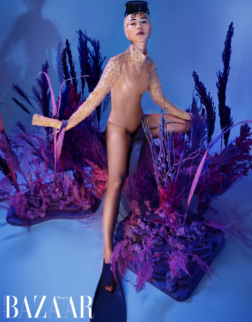 Stylist Melissa Lynn kết thúc bộ ảnh Under the Sea với một thiết kế từ bộ sưu tập Xuân Hè 2022 của thương hiệu threeASFOUR. Thương hiệu avant-garde này được biết đến với lối suy nghĩ khác lạ, không chấp nhận vẻ đẹp quy chuẩn, luôn đề ra những chuẩn mực vẻ đẹp mới lạ. Có thể áp dụng lối suy nghĩ của họ với những sinh vật biển dưới đáy đại dương kỳ bí. Chúng ta cho rằng chúng xấu xì và kỳ quái; nhưng đối với chúng, ngoại hình của chúng ta mới là bất bình thường!