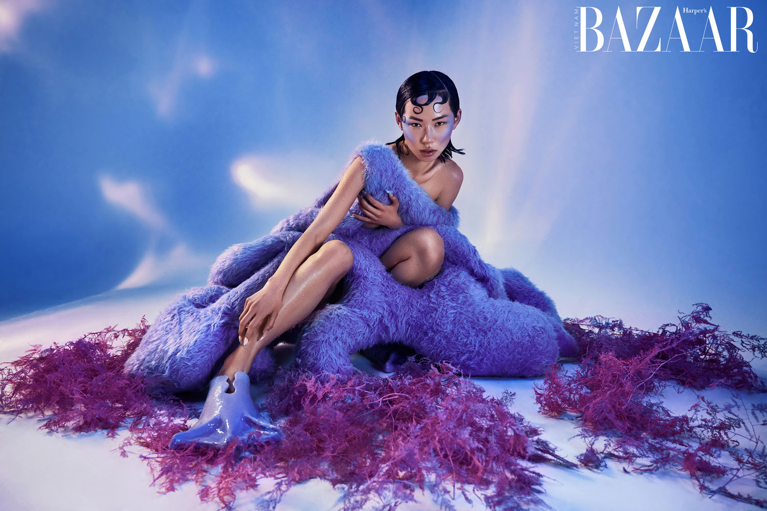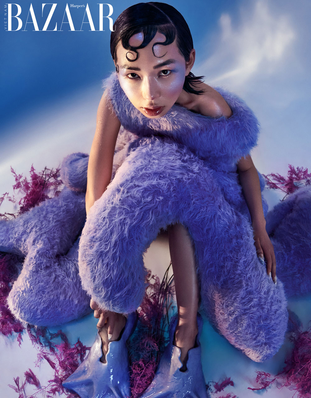 Một tác phẩm nữa stylist Melissa Lynn đã mang vào bộ ảnh Under the Sea là thiết kế của Stephanie Uhart. Cô sinh viên tốt nghiệp ngành Đan và dệt (Knitwear) từ trường Central Saint Martins đã chế tác nên những thiết kế đầy lông xù xì, như một tác phẩm nghệ thuật hơn là sản phẩm may mặc sẵn. Kết cấu xù xì ấy thật giống với những con sò lông, sao biển, hải quỳ lơ lửng theo làn nước dưới đáy đại dương.