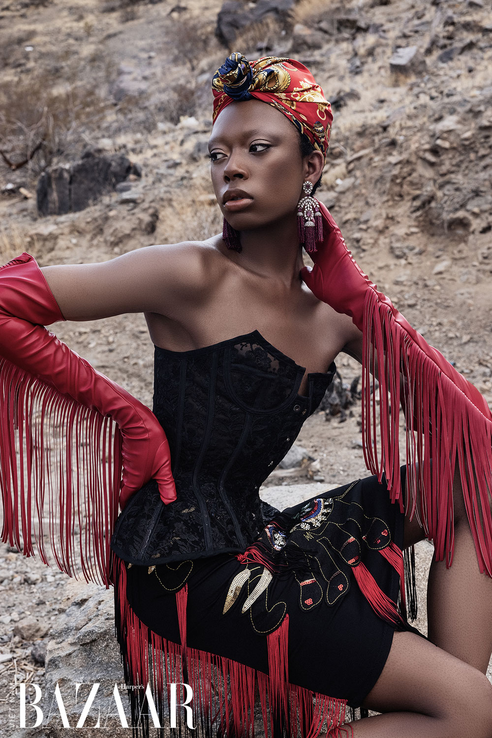 Áo và quần, Jovana Louis. Corset, Stello Couture. Vòng cổ, Kairu Jewelry.