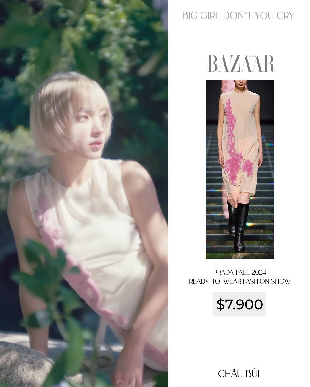 Thông qua dự án Big Girl Don’t You Cry, Châu Bùi muốn nhắn nhủ: “Con gái không nhất thiết phải sống như những ‘lời dạy’ mới là tốt”. Trang phục của cô trong MV đi từ sự gò bó, định kiến đến sự phóng khoáng, tự do. Đây không chỉ là màn khoe đồ hiệu, mà là sự dùng thời trang để kể chuyện – một ngôn ngữ mà Châu Bùi thành thạo nhất.