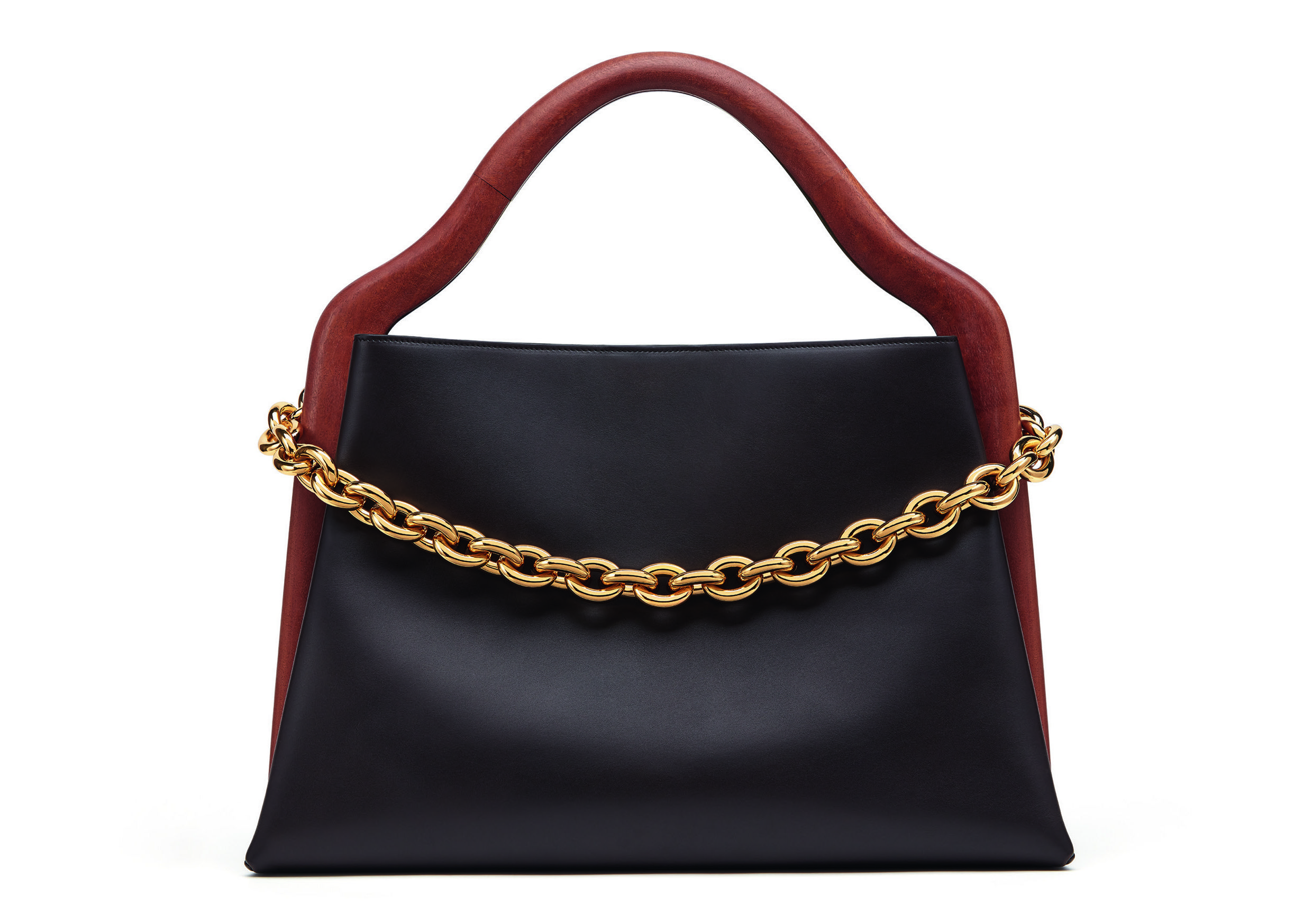 Một trong những thiết kế nổi bật nữa là mẫu túi The Mount Bermuda. Một chiếc túi độc đáo trong thiết kế và sự kết hợp vật liệu đầy bất ngờ. Chi tiết mang tính tuyên ngôn là tay cầm trên bằng gỗ Mogano quý giá. Các tấm da mềm được gấp lại xung quanh tay cầm bằng gỗ rắn rỏi tạo ra một hình dáng thú vị.