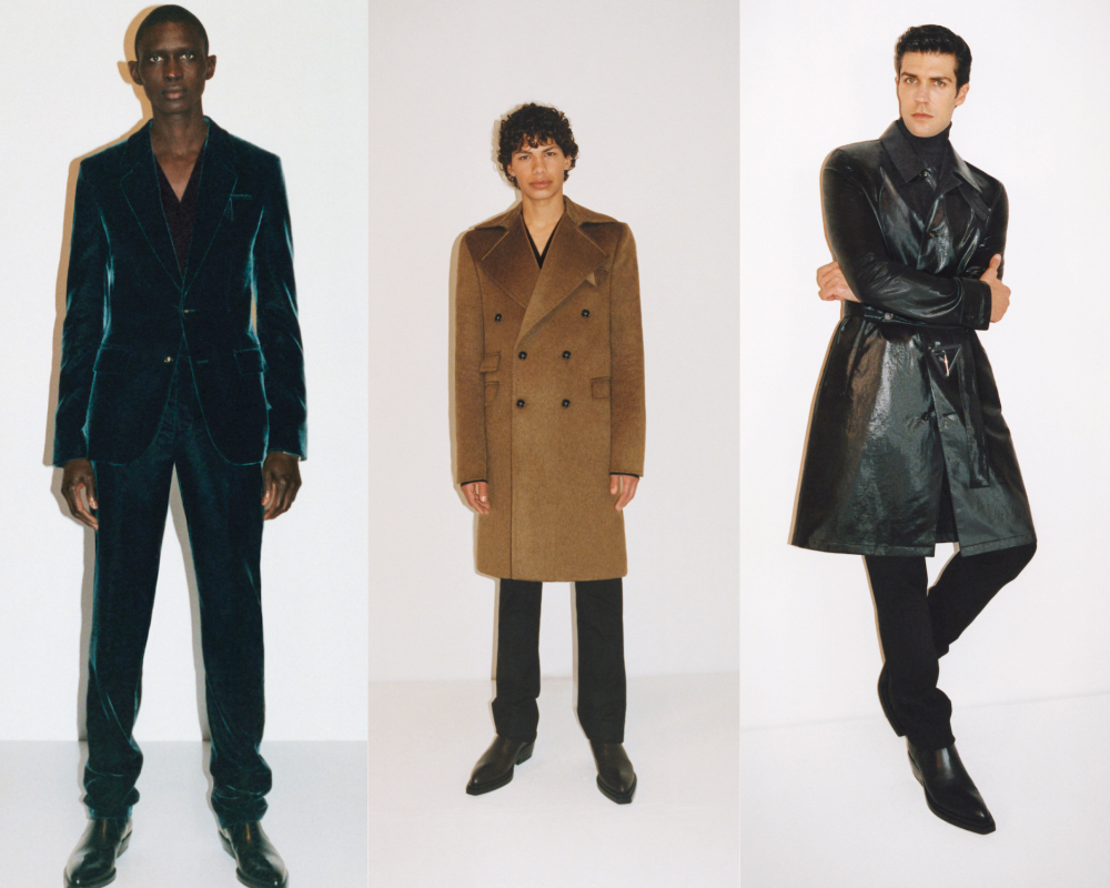 Tương tự, quần áo nam cũng duy trì sự cân bằng đó. Các chất liệu hiện đại như vải nylon kỹ thuật đan xen chất liệu truyền thống như nhung, các loại vải được thiết kế riêng, lông giả và đương nhiên không thể thiếu da. Những bộ áo liền quần lùng nhùng đối nghịch với những bộ suit nhung may đo vừa vặn.