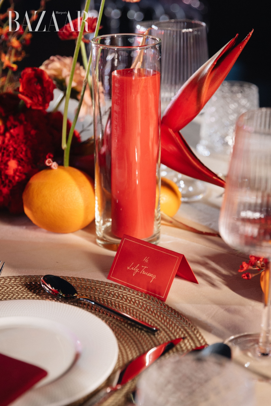 Không gian sự kiện được bao phủ bởi sắc đỏ và vàng đặc trưng của BVLGARI, cũng là những màu sắc may mắn cho năm mới. Đến với bữa tiệc, khách tham dự được đắm mình vào những hoạt động mang đậm di sản văn hóa Việt, nổi bật là hoạt động thư pháp, khi họ có dịp chiêm ngưỡng nghệ nhân thể hiện những nét bút uyển chuyển, viết lời cầu chúc an lành cho năm mới.