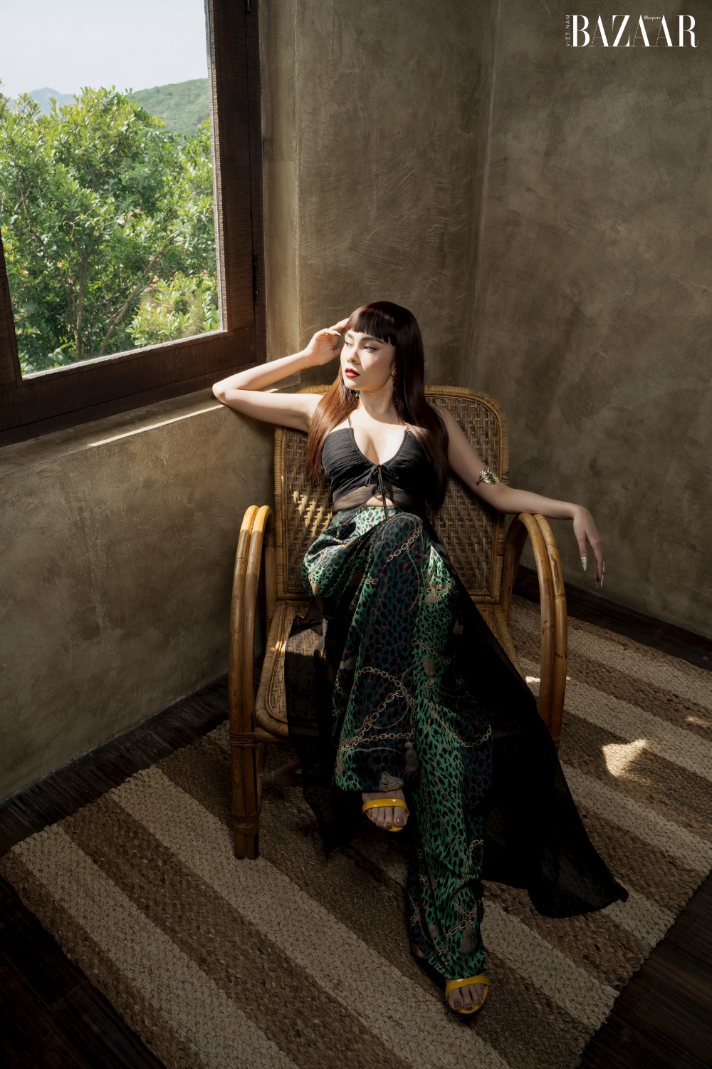Trong trang phục mang cảm hứng Baroque từ BST Xuân Hè 2021 của XITA, Lưu Hiền Trinh khoe thần thái sắc sảo, cuốn hút. Tóc mái băng ngang trán lạ mắt, bộ móng tay nhọt quyền lực. Trang sức vàng mang hơi thở nhiệt đới. Thiết kế giúp giọng ca opera khéo khoe vóc dáng nuột nà.