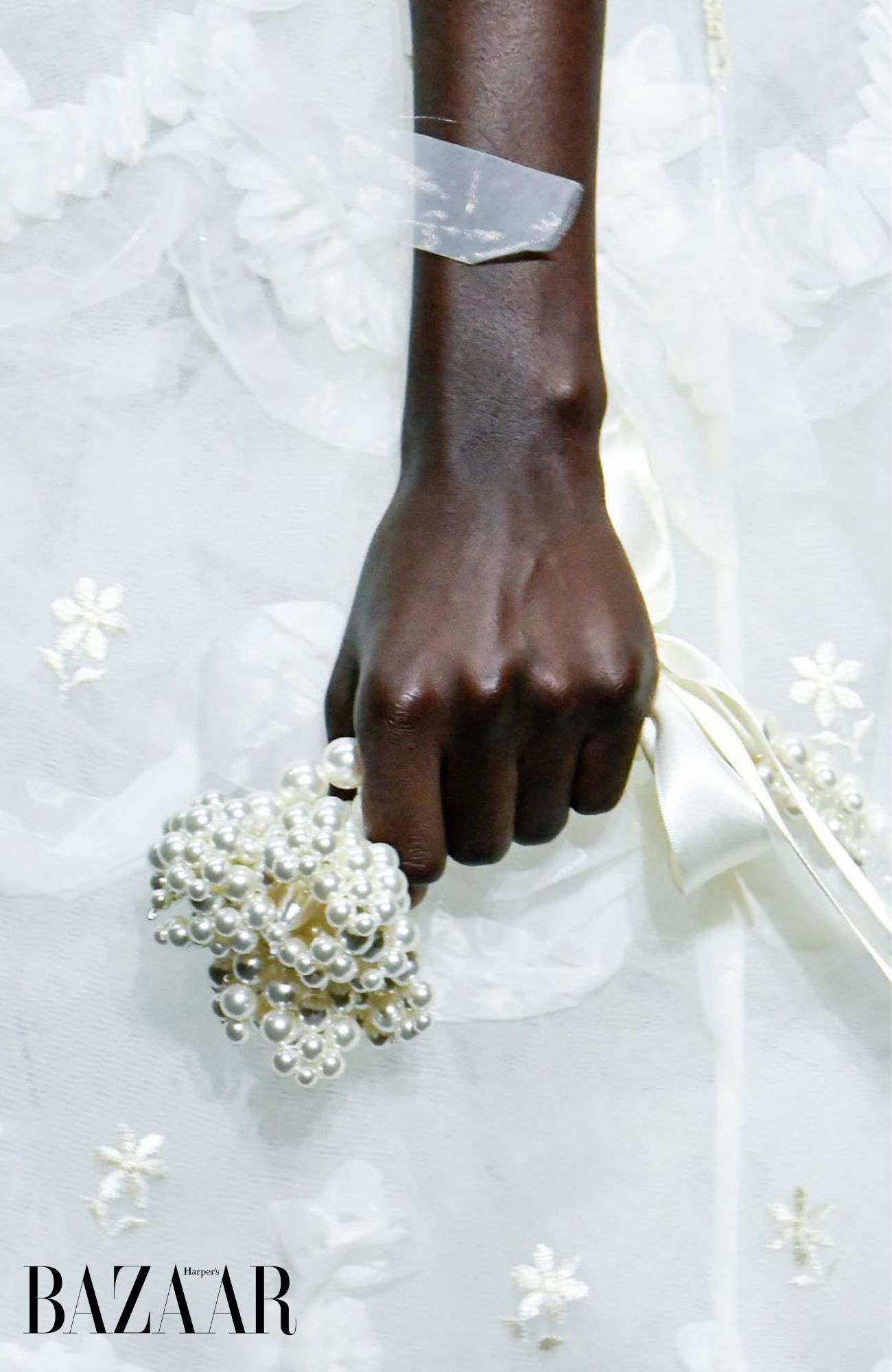 - Hoa làm từ hạt cườm tại show Simon Rocha Xuân Hè 2024. Ảnh: Getty Images
