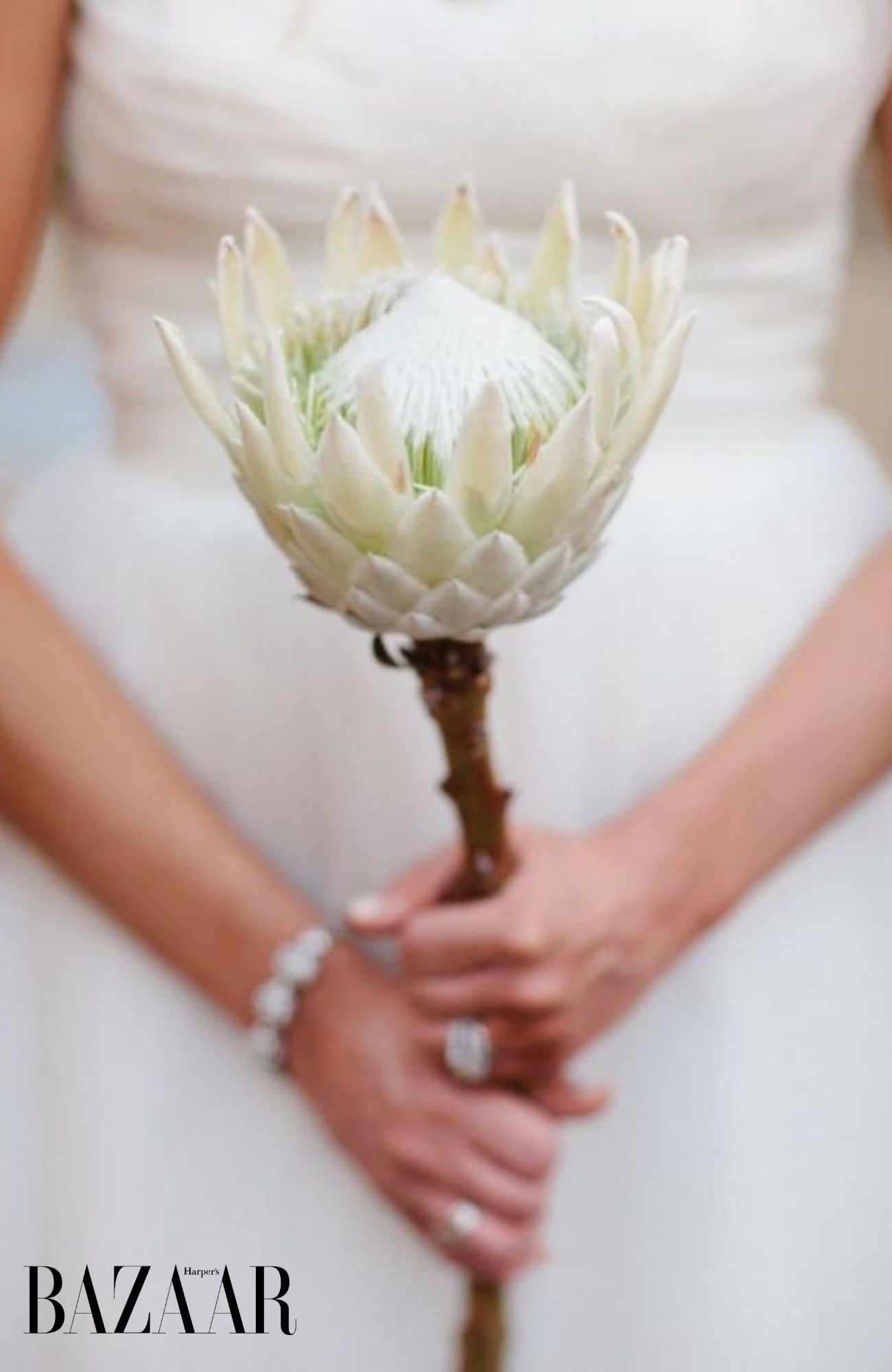 Ta đã quá quen với những bó hoa cưới đầy đặn, kết hợp nhiều loại hoa, tạo thành hình cầu quen thuộc thuận tiện cho truyền thống ném hoa. Tuy nhiên những cặp đôi mong muốn một lễ cưới đơn giản và ấm áp đang lăng-xê xu hướng hoa cưới chỉ sử dụng một bông hoa duy nhất.