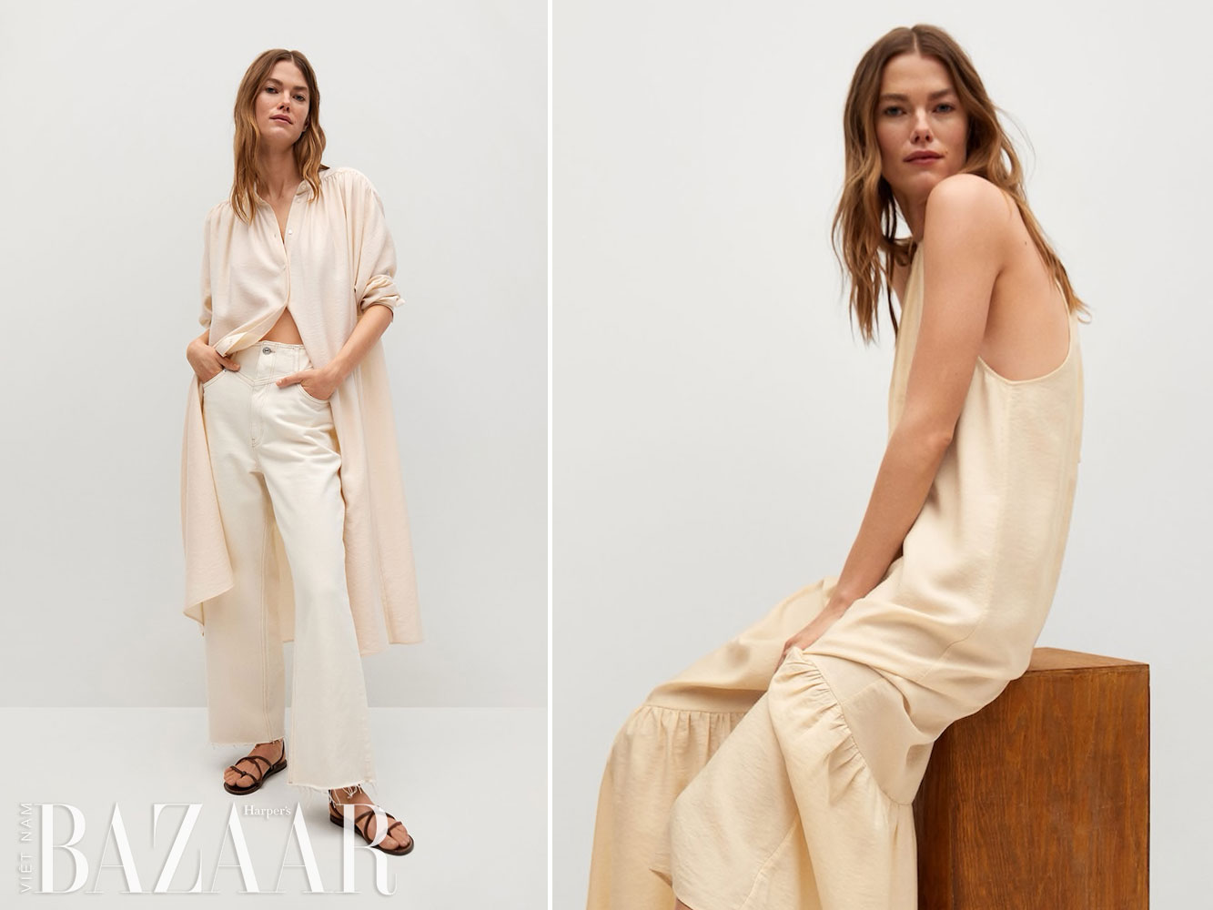 Áo sơ-mi dáng dài và đầm maxi bằng viscose, Mango