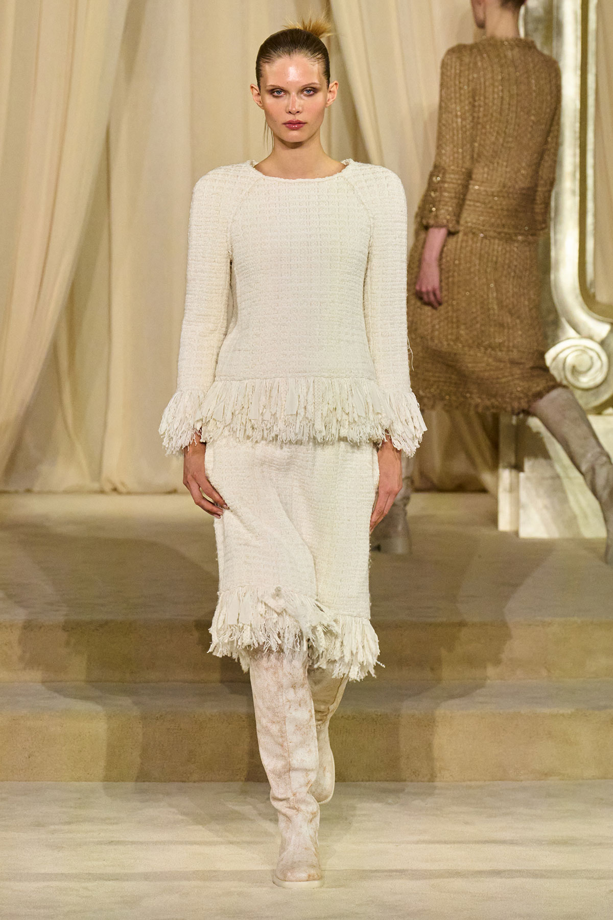 Lúa mì cũng là một biểu tượng đã gắn liền với Chanel, tuy không được khai thác nhiều như hoa trà hay nơ, và đại biểu cho sự sung túc. Hình ảnh những bó lúa mì xuất hiện xuyên suốt bộ sưu tập, thêu trên cổ áo và thể hiện qua những tua rua trên ống tay áo, và dệt trên bộ cánh mở màn. Tất cả như một lời chúc cho sự khởi đầu của tân giám đốc sáng tạo Matthieu Blazy, người sẽ trình làng bộ sưu tập đầu tay cho Chanel vào mùa ready-to-wear Xuân Hè 2026 trong ba tháng nữa.