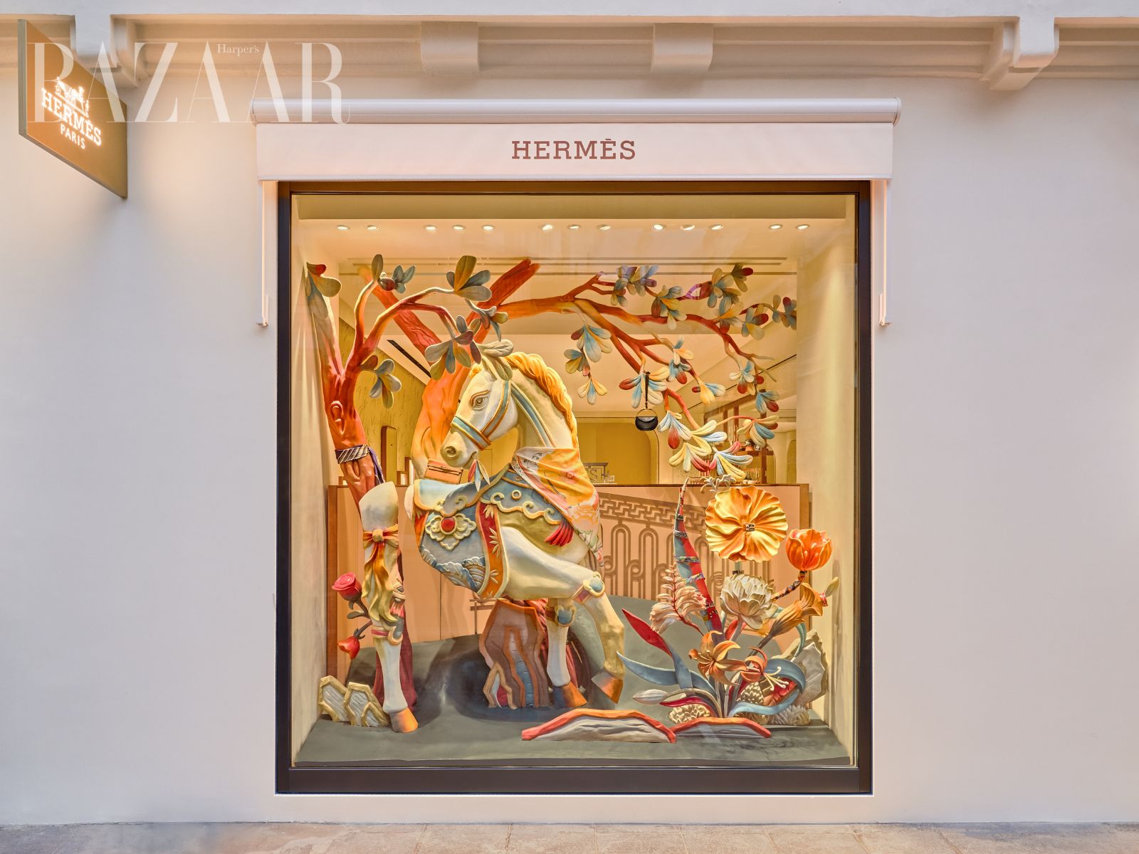 Hermès 24 Tràng Tiền không đơn thuần là một cửa hàng thời trang, mà trở thành một không gian giao thoa tinh tế giữa nghệ thuật, văn hóa và cảm xúc. Tại đây, mỗi ô cửa sổ như một cánh cổng mở ra thế giới tưởng tượng, nơi truyền thống và hiện đại cùng song hành, nơi những câu chuyện dân gian được kể lại bằng ngôn ngữ đương đại đầy sáng tạo.