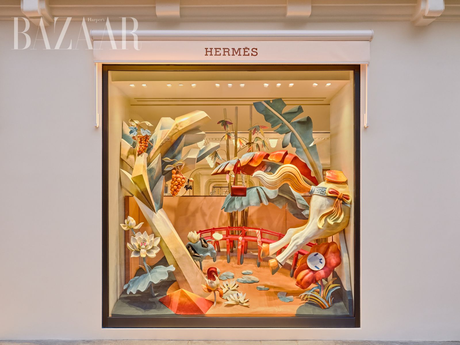 Kể từ khi chính thức khai trương, cửa hàng Hermès 24 Tràng Tiền đã trở thành địa điểm check-in hot nhất thủ đô bởi những khung cửa sổ trưng bày án tương. Đây là một tác phẩm của nghệ sĩ Nguyễn Xuân Lam thực hiện riêng cho cửa hàng Hermès ở địa chỉ 24 Tràng Tiền, Hà Nội.
