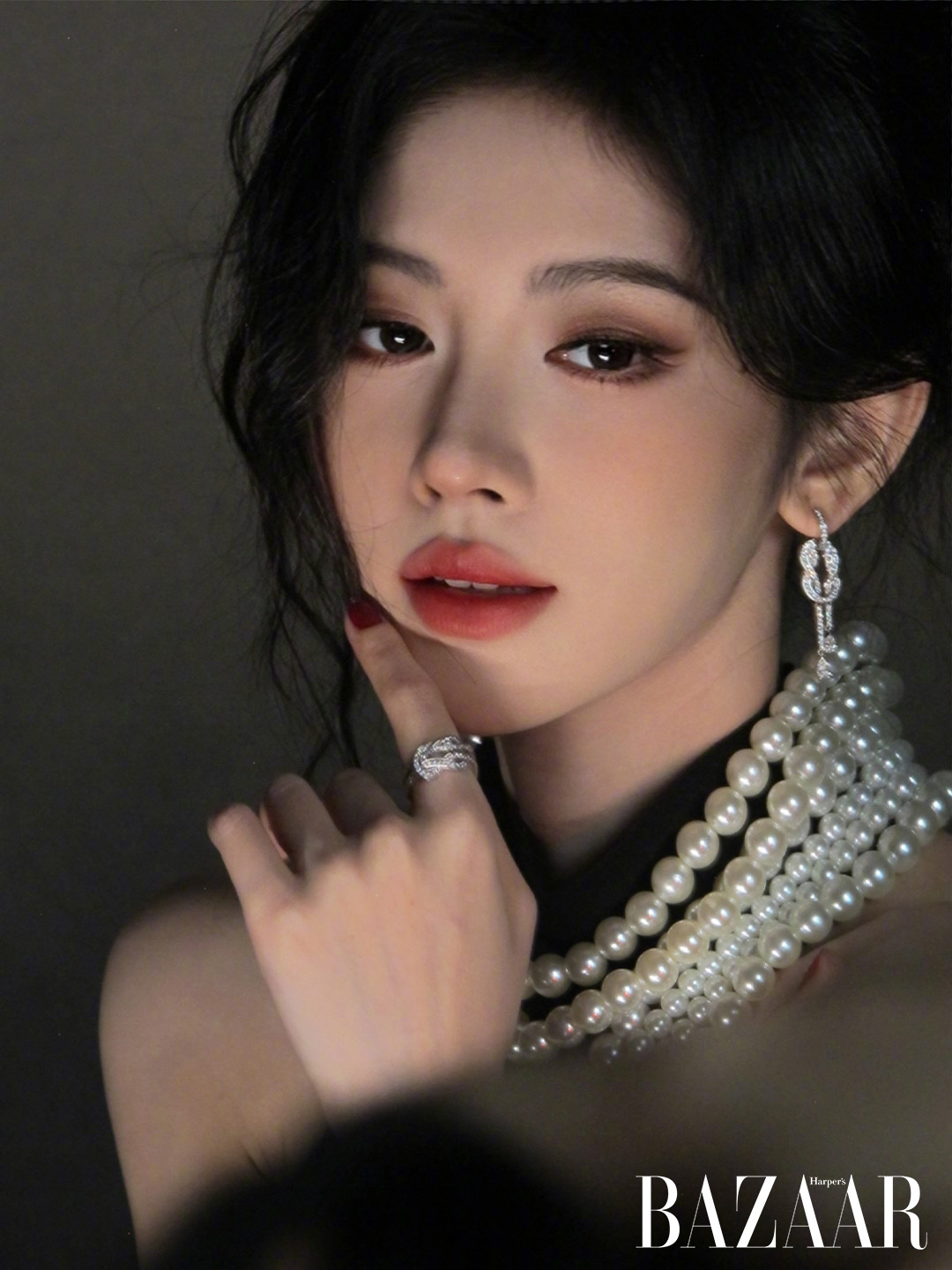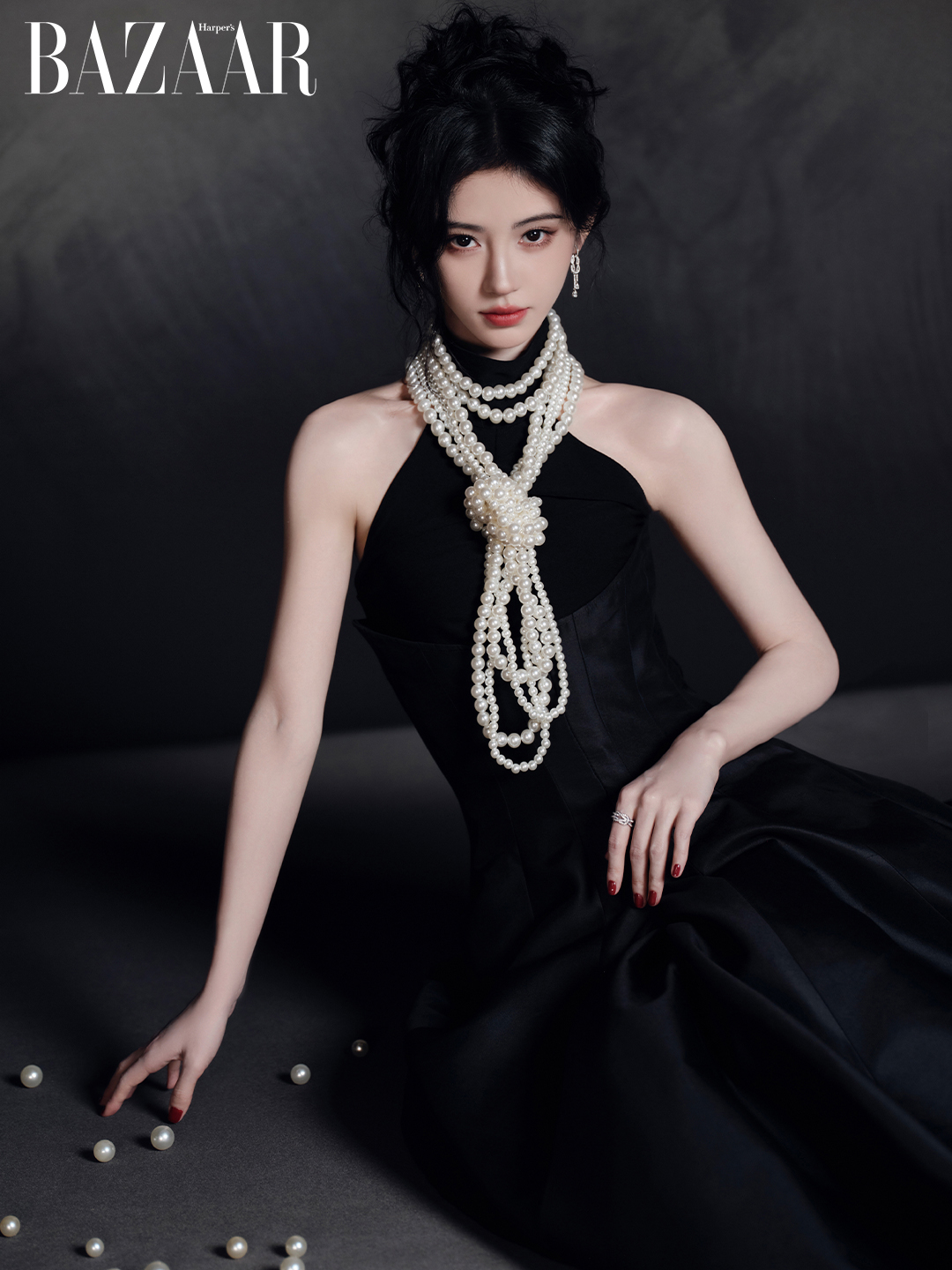 Tham dự Tinh Quang Đại Thưởng 2025, nữ diễn viên mặc chiếc đầm nhung đen cổ yếm, phối cùng chuỗi ngọc trai và hoa tai kim cương từ trang sức FRED, thương hiệu mà Cúc Tịnh Y đang đảm nhiệm vai trò đại sứ khu vực Trung Quốc. Sự giao thoa giữa vẻ cổ điển của ngọc trai và ánh kim cương hiện đại mang đến cảm giác cân bằng hoàn hảo, làm dịu sắc đen trầm, đồng thời thắp lên thứ hào quang lấp lánh.