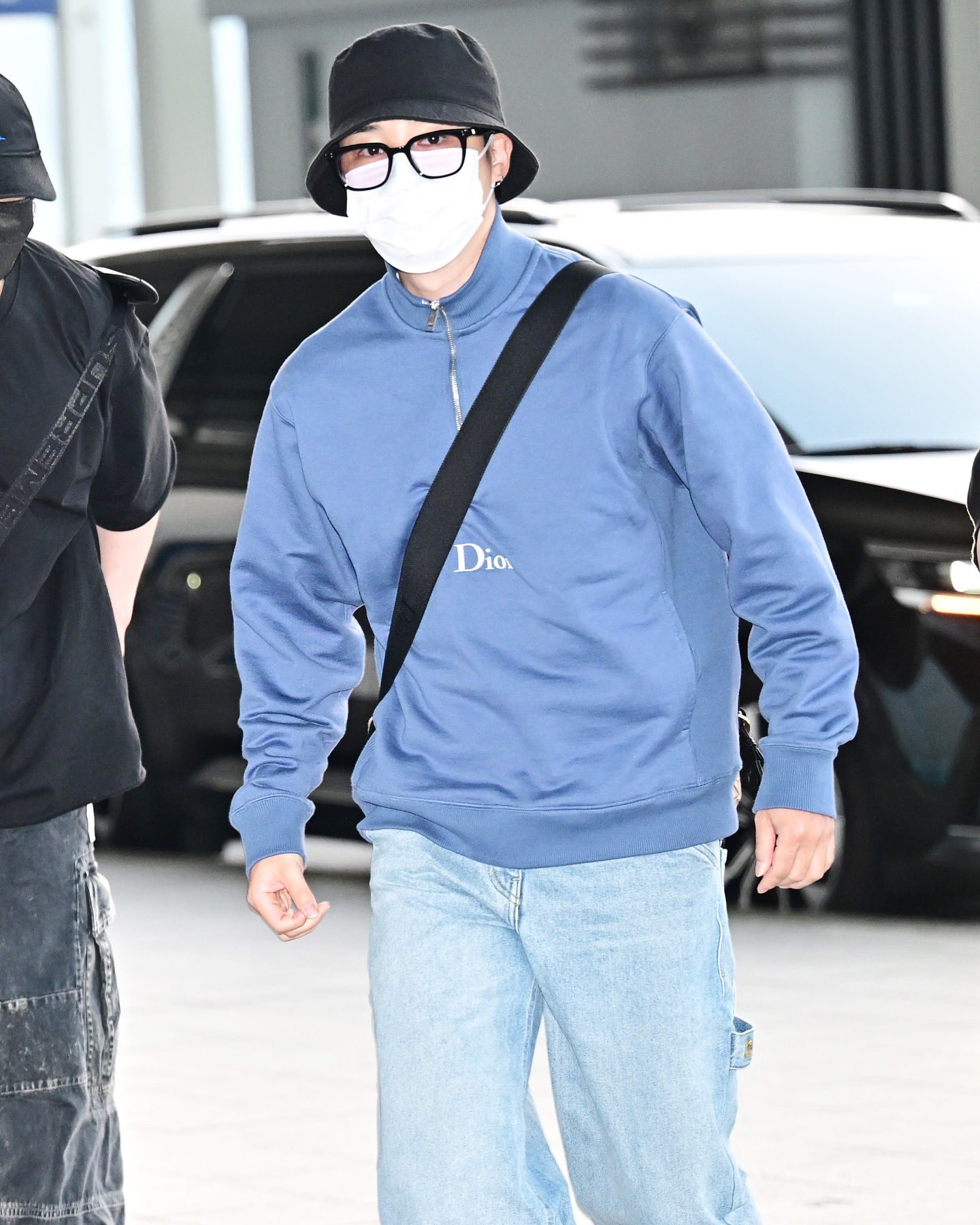 Nam ca sĩ diện áo khoác có mũ đi cùng quần short Bermuda bằng cotton đậm dấu ấn athleisure, thể hiện tinh thần sống đô thị hiện đại. Tất nhiên, cũng không thể thiếu chiếc túi xách Dior Roadie đang là item yêu thích của mình.