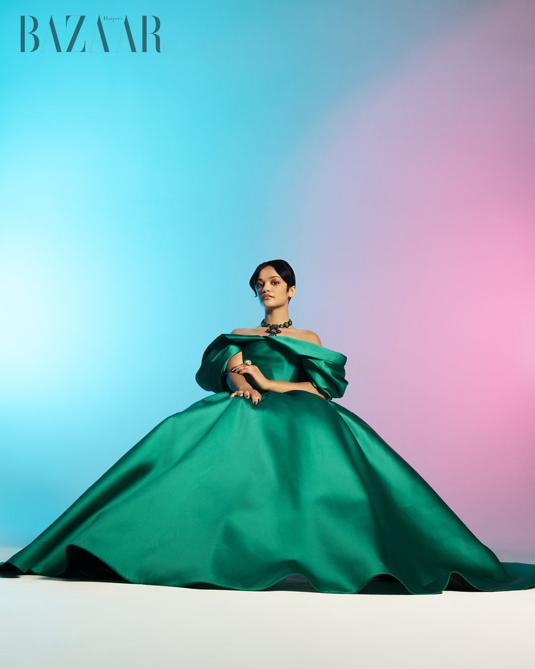 Diễn viên Marissa Bode, ngôi sao nổi lên từ bộ phim Wicked, trên bìa số của Harper's Bazaar Việt Nam trong chiếc đầm xanh ma mị.