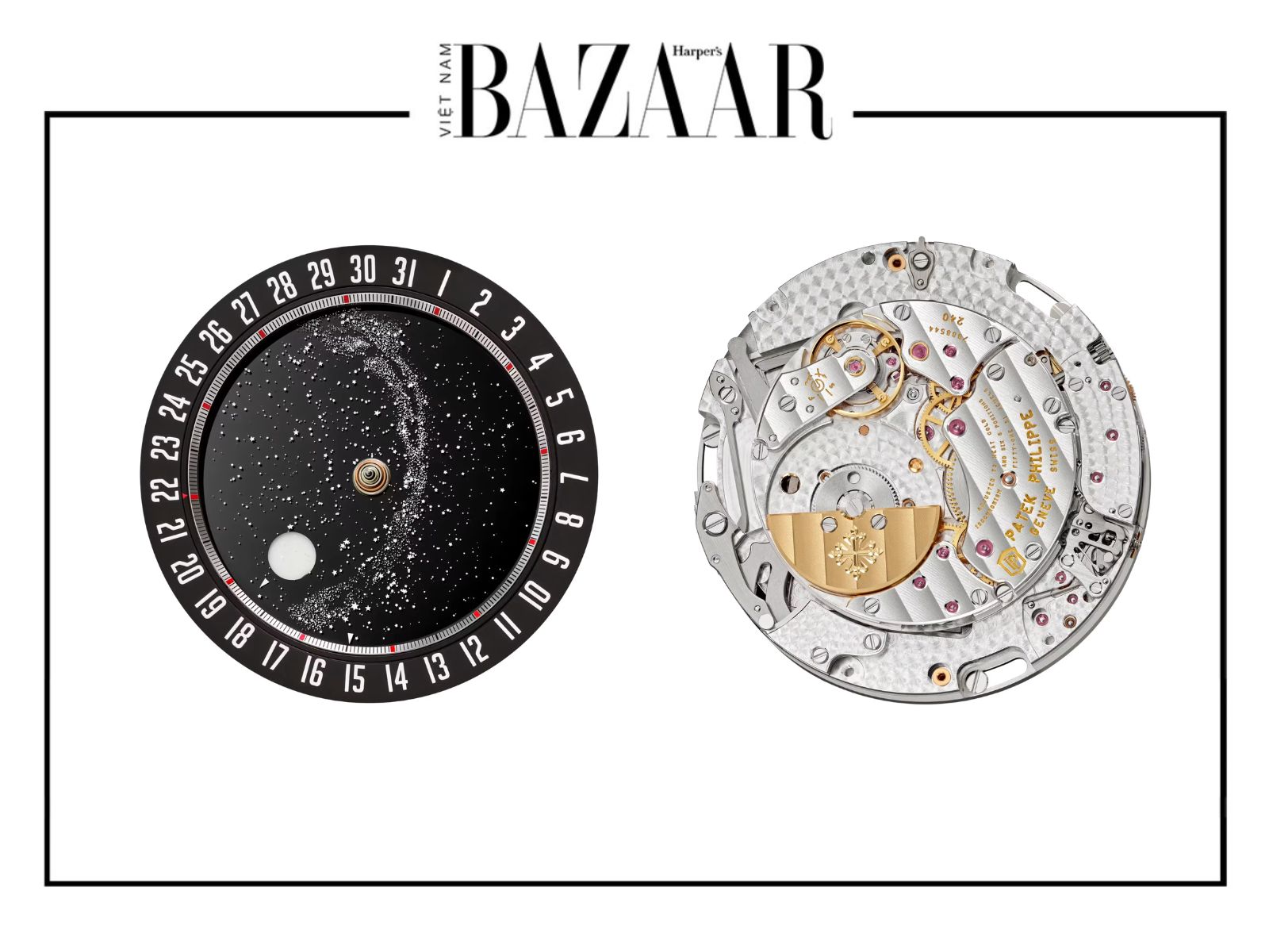 Điểm đột phá nhất của Ref. 6105G chính là việc đây là chiếc đồng hồ đeo tay Grand Complication đầu tiên của Patek Philippe hiển thị thời gian bình minh và hoàng hôn. Mặt số đại diện cho biểu đồ bầu trời như quan sát được từ Geneva, cho phép chủ nhân không chỉ theo dõi thời gian mà còn kết nối trực tiếp với nhịp điệu của vũ trụ. Đây là minh chứng rõ nét nhất cho việc sáng tạo luôn nuôi dưỡng đổi mới kỹ thuật tại Patek Philippe.