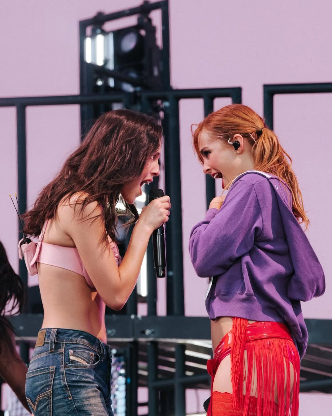 Trong tuần lễ phát hành drop dead, Olivia Rodrigo đã tạo nên một cú sốc văn hóa khi bất ngờ xuất hiện tại Coachella 2026. Giữa set diễn của Addison Rae, Olivia bước lên sân khấu trong tiếng reo hò của hàng nghìn khán giả. Cả hai đã cùng trình diễn “drop dead” lần đầu tiên trên sân khấu live, khẳng định sức ảnh hưởng của ca khúc này không chỉ trên bảng xếp hạng mà còn trên các sân khấu lễ hội âm nhạc lớn nhất thế giới.