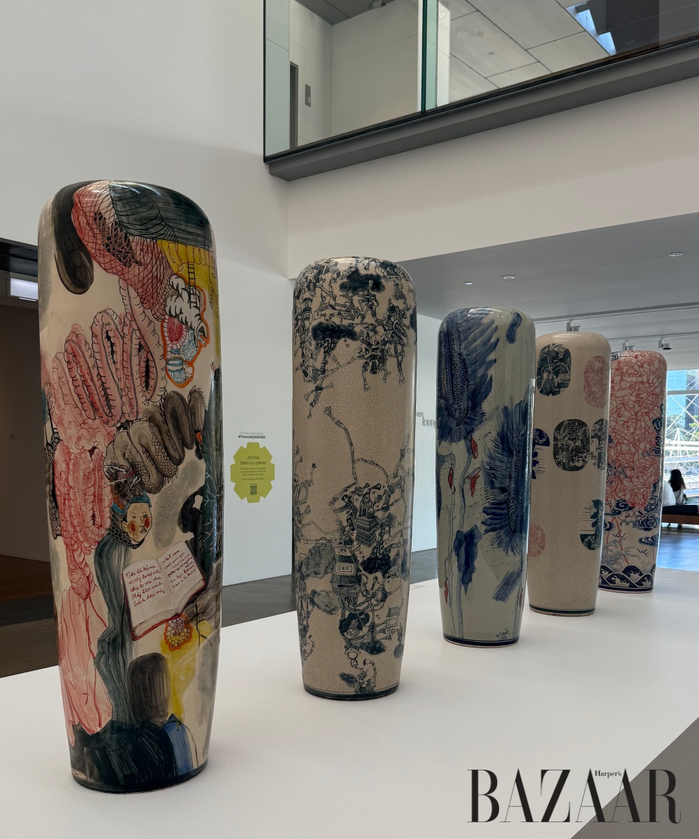 Những tác phẩm sắp đặt quy mô lớn, giàu chất liệu và được thiết kế phù hợp với từng không gian đã giúp triển lãm trở nên dễ tiếp cận hơn, vừa hấp dẫn ngay từ cái nhìn đầu tiên vừa mở ra cơ hội chiêm nghiệm sâu sắc. Ví dụ, tác phẩm sắp đặt mang tính xúc giác của Mit Jai Inn, lấy cảm hứng từ các hình thức như đường hầm, cuộn giấy và totem treo, được bày trí trên một hồ nước nông bên trong QAG.