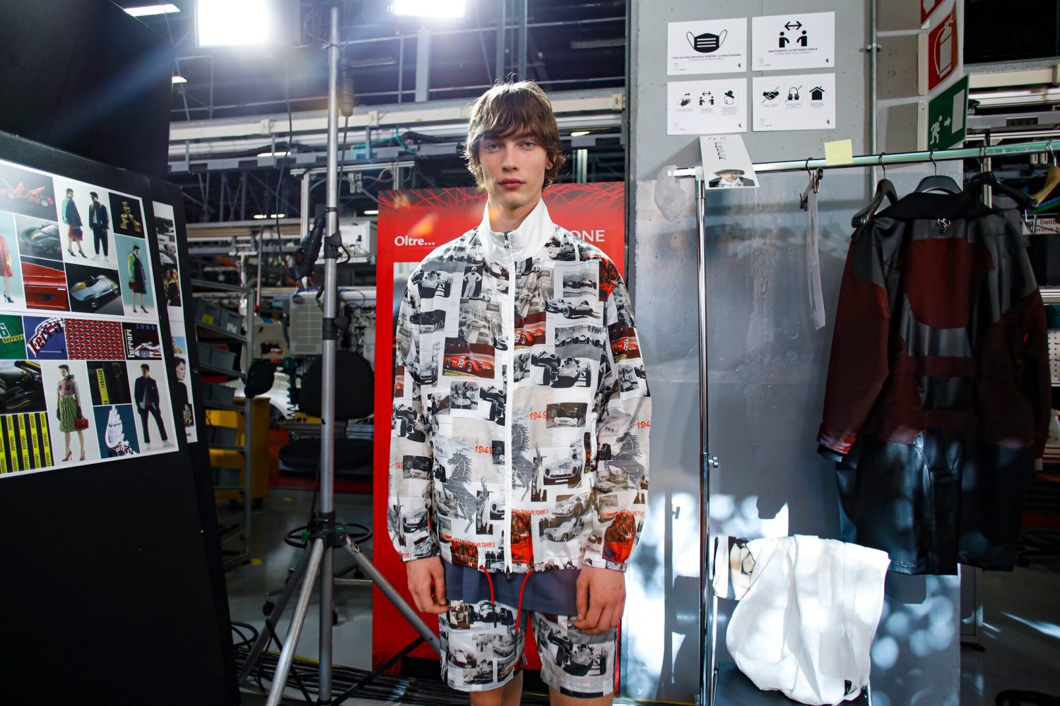 Địa điểm diễn ra show thời trang là nhà máy Ferrari ở Maranello, Italy. Đây là nơi thương hiệu cho ra đời những chiếc siêu xe gầm cao nổi tiếng.