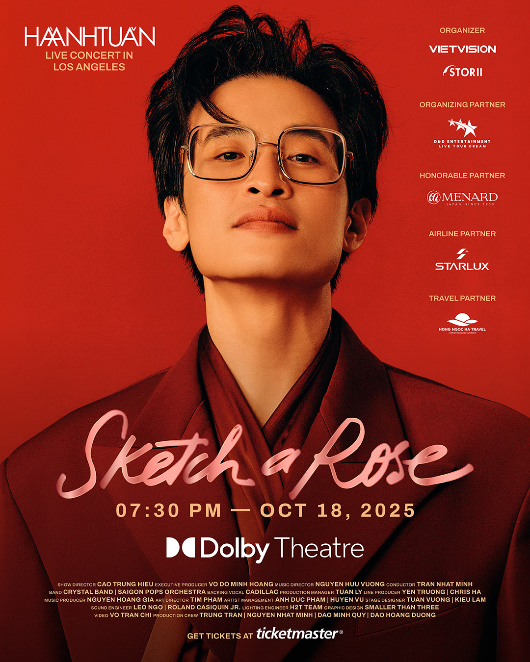 Đêm diễn đặc biệt vào ngày 18/10/2025 vì thế trở thành cột mốc đáng nhớ, nơi âm nhạc, thời trang và tinh thần Việt giao hoà trong cùng một hơi thở sáng tạo. Đồng hành cùng Hà Anh Tuấn tại đêm diễn Los Angeles là hai nhà thiết kế tài năng Peter Do và Mai Lâm, mỗi người góp một mảnh ghép riêng, làm nên bức tranh thời trang đậm chất nghệ thuật cho Sketch A Rose.