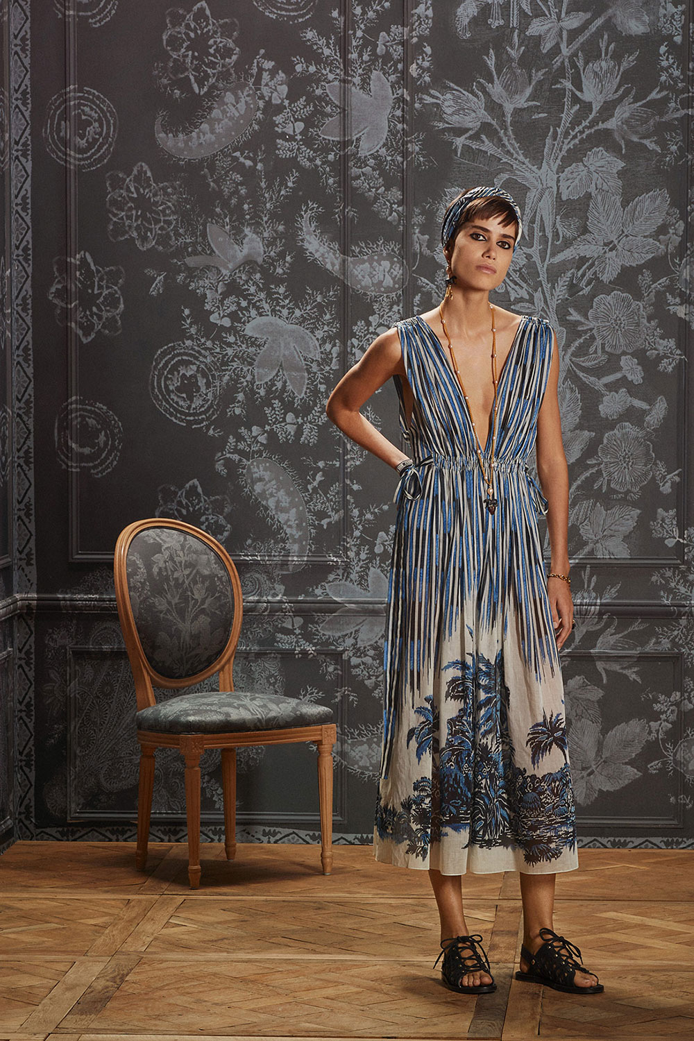 Chuẩn bị cho cái nóng ẩm sắp đến của mùa hè, giám đốc sáng tạo Maria Grazia Chiuri của Dior tung ra các mẫu họa tiết nhiệt đới. Hình ảnh dừa và cau là một trong những họa tiết chủ đạo của bộ sưu tập Dior Xuân Hè 2021. Một bộ sưu tập khơi gợi cảm xúc muốn đi du lịch đến những hòn đảo xanh mát trong dịp nắng nóng.