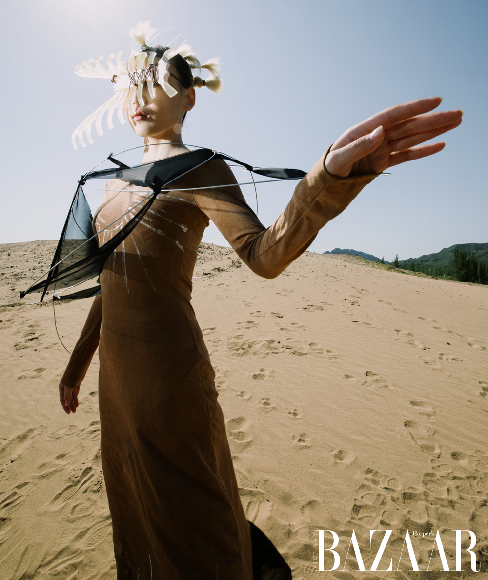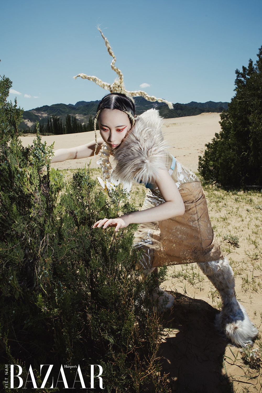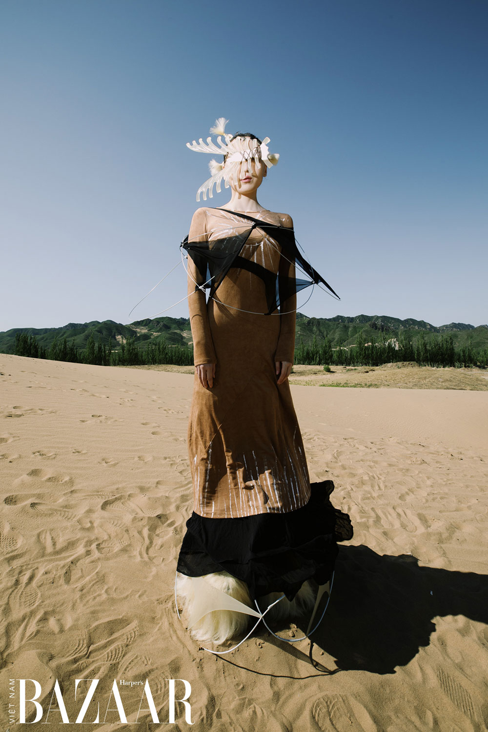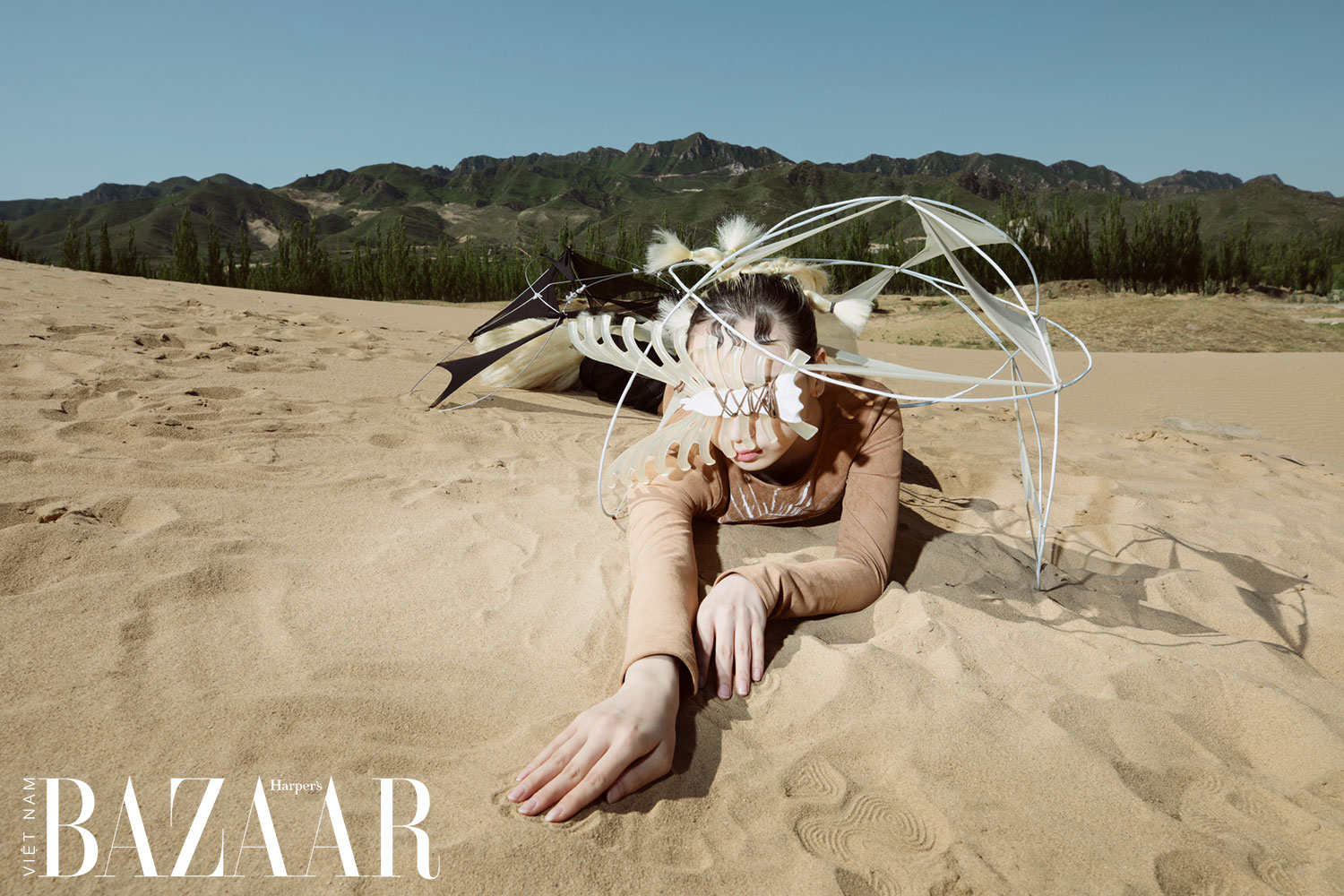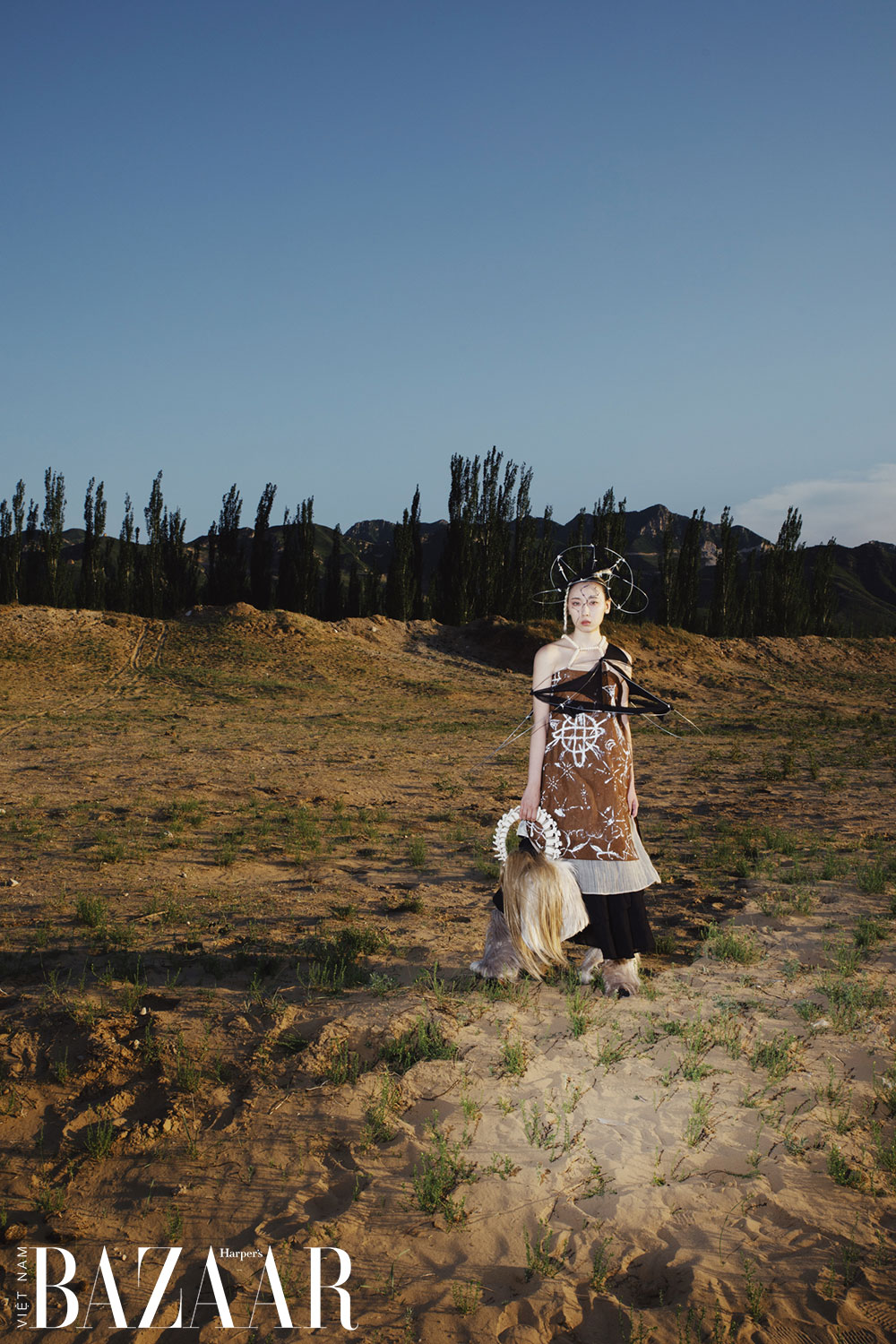 Stylist Yanjun Wang đã kết hợp cùng nhiếp ảnh gia Yuxian He để thực hiện các tấm ảnh mang phong cách siêu thực. Cả hai có sự hợp tác nhịp nhàng vì cùng sở hữu phong cách giao thoa Đông Tây, khi đã làm việc tại cả Bắc Kinh và London. Họ chọn bối cảnh là sa mạc Thiên Môn ở Hà Bắc, Trung Quốc. Bối cảnh này là một kỳ quan của thiên nhiên, vì nó là một sa mạc tự nhiên được bao bọc xung quanh bởi đất đai màu mỡ bình thường. Sa mạc nhỏ nhất Trung Quốc này cũng là bối cảnh quay nhiều bộ phim tại Đại Lục.