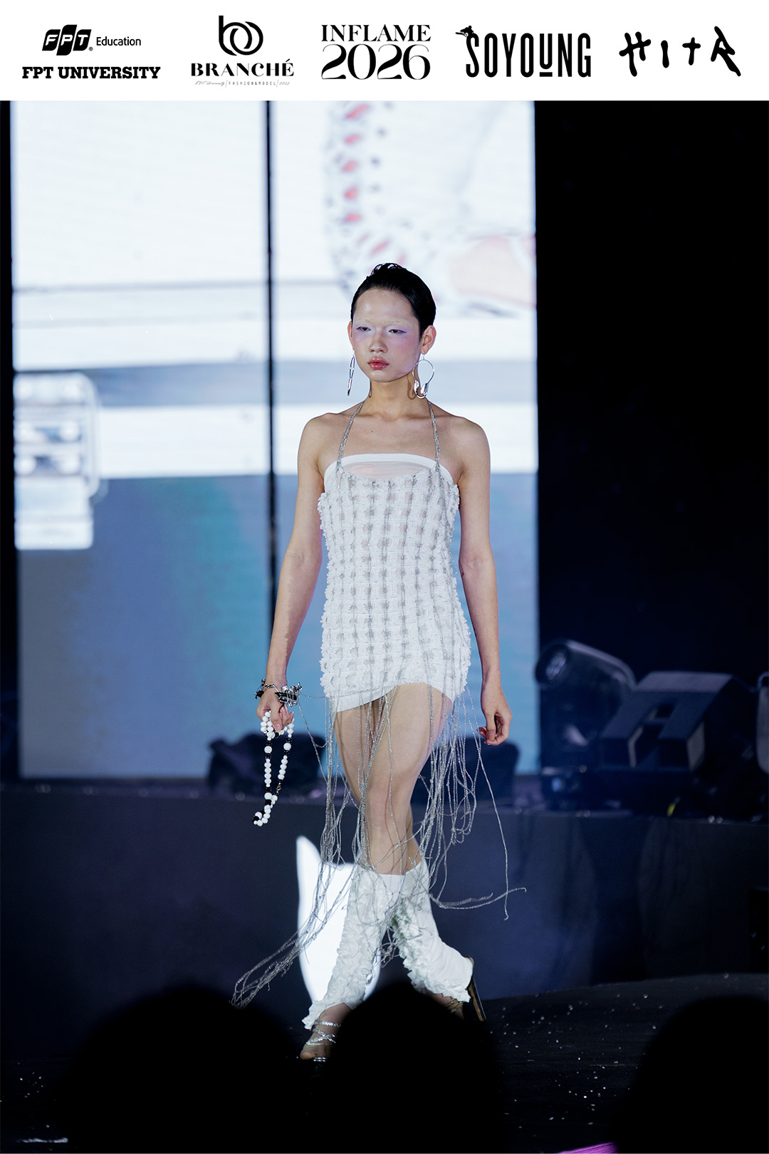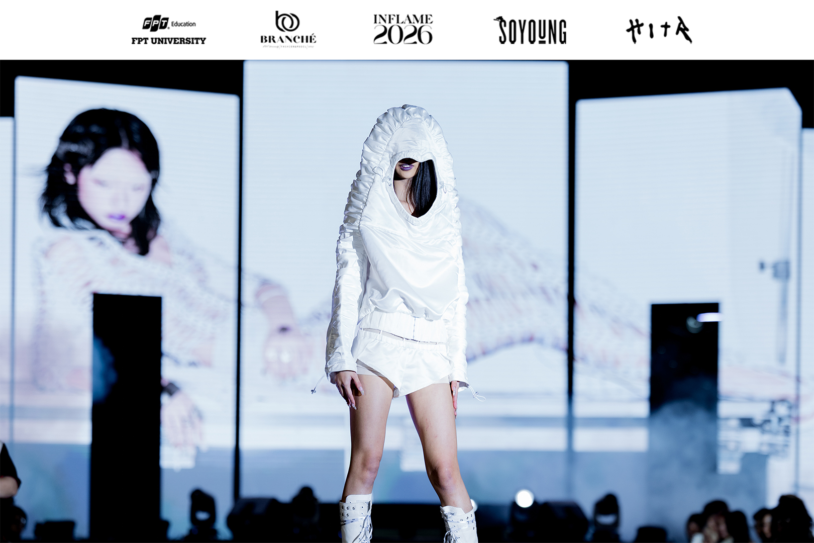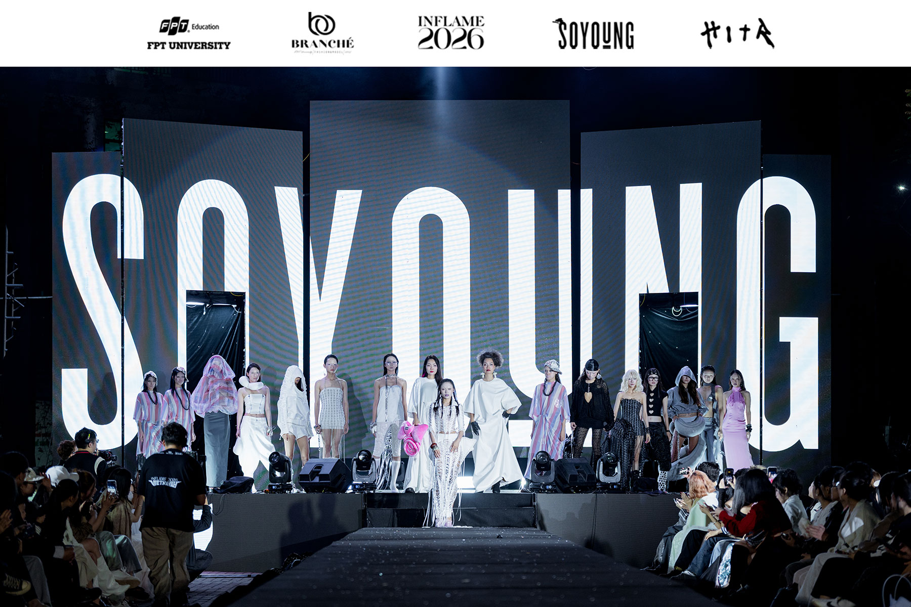 Sự xuất hiện của thương hiệu thời trang Việt SOYOUNG trong Showcase 3 vì thế trở thành một dấu hiệu đáng chú ý. Trong hệ sinh thái sáng tạo hiện nay, SOYOUNG được định vị ở phân khúc Youth Luxury Avant-Garde, dòng thời trang trẻ mang hơi thở cao cấp với tư duy thiết kế thiên về ý niệm. Việc một thương hiệu theo đuổi hướng đi khá kén người mặc lựa chọn góp mặt tại sân khấu của sinh viên cho thấy INFLAME đã đạt tới mức độ chuyên nghiệp nhất định trong khâu tổ chức và định hướng nghệ thuật.
