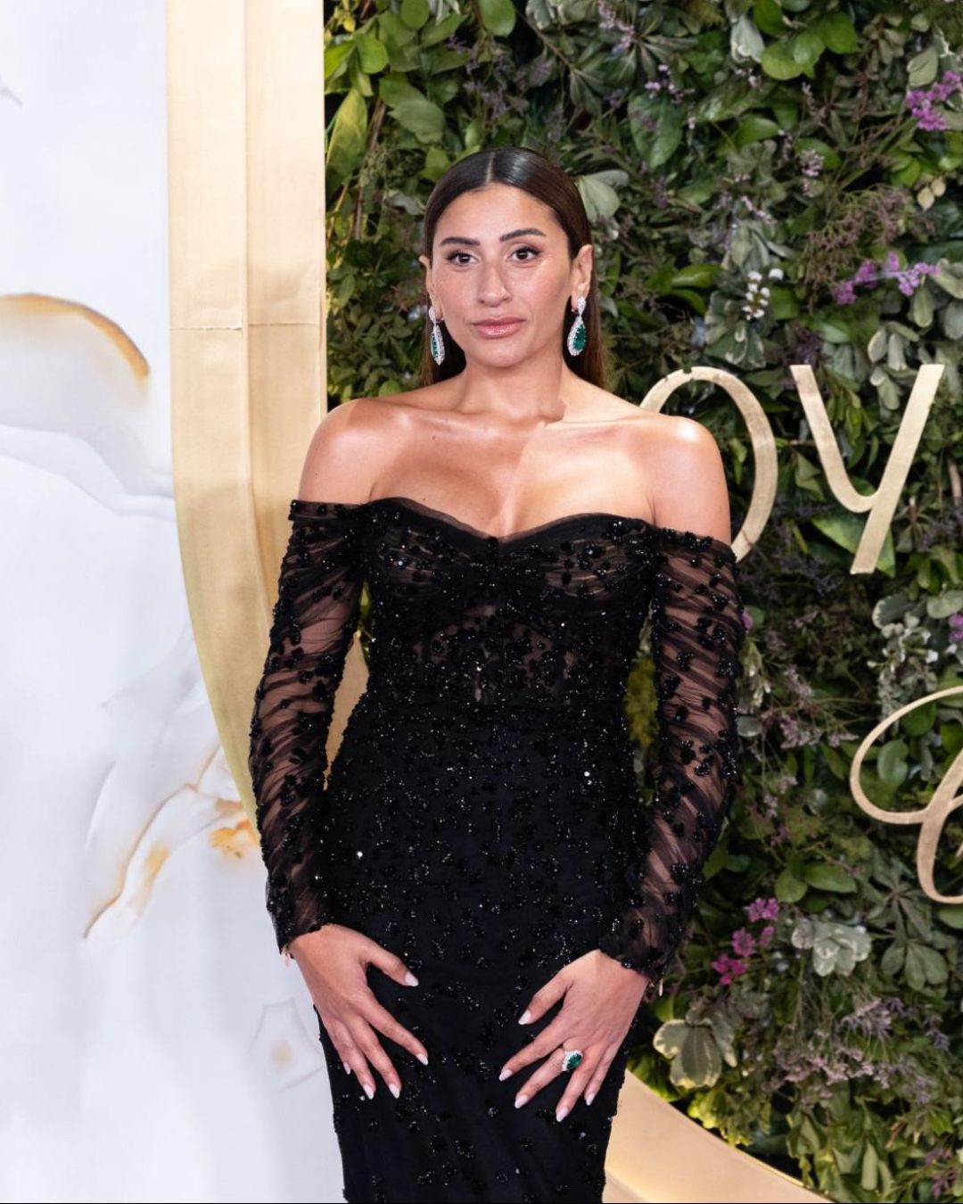 Bên cạnh các ngôi sao Hollywood, Joy Awards 2026 cũng chứng kiến màn “đọ sắc” của các mỹ nhân Ai Cập với những lựa chọn trang sức mang đậm dấu ấn cá nhân. Salma Abu-Deif thu hút ánh nhìn trong bộ trang sức kim cương vàng hình quả lê kích thước lớn, được chế tác từ vàng trắng và vàng vàng 18K. Nelly Karim mang đến sắc màu khác biệt với hoa tai hồng ngọc hình quả lê kết hợp nhẫn đính đá tourmaline đa sắc tạo điểm nhấn nổi bật trên thảm đỏ.