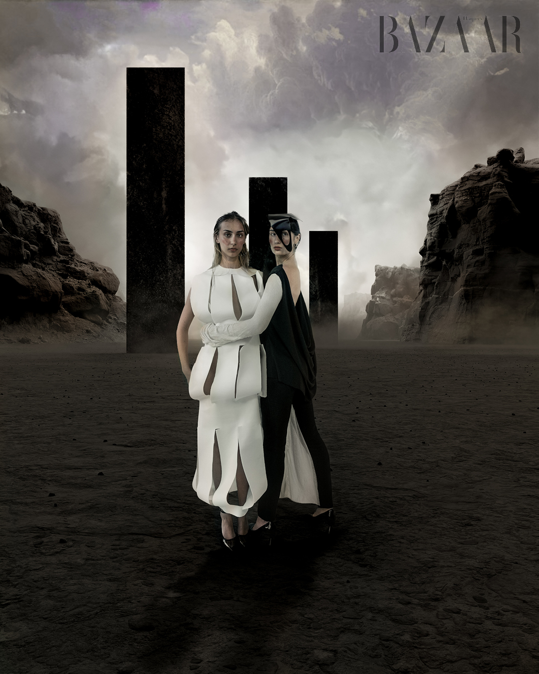 From wind-cut deserts to monolithic silhouettes, Wren Walker’s Kinesis imagines a new alliance between fashion and science. Each look is built for motion, designed to harvest energy from the body and turn movement into power. Here, style becomes action, shifting us from passive consumption to active care. A future of sustainability feels symbiotic, not extractive.
