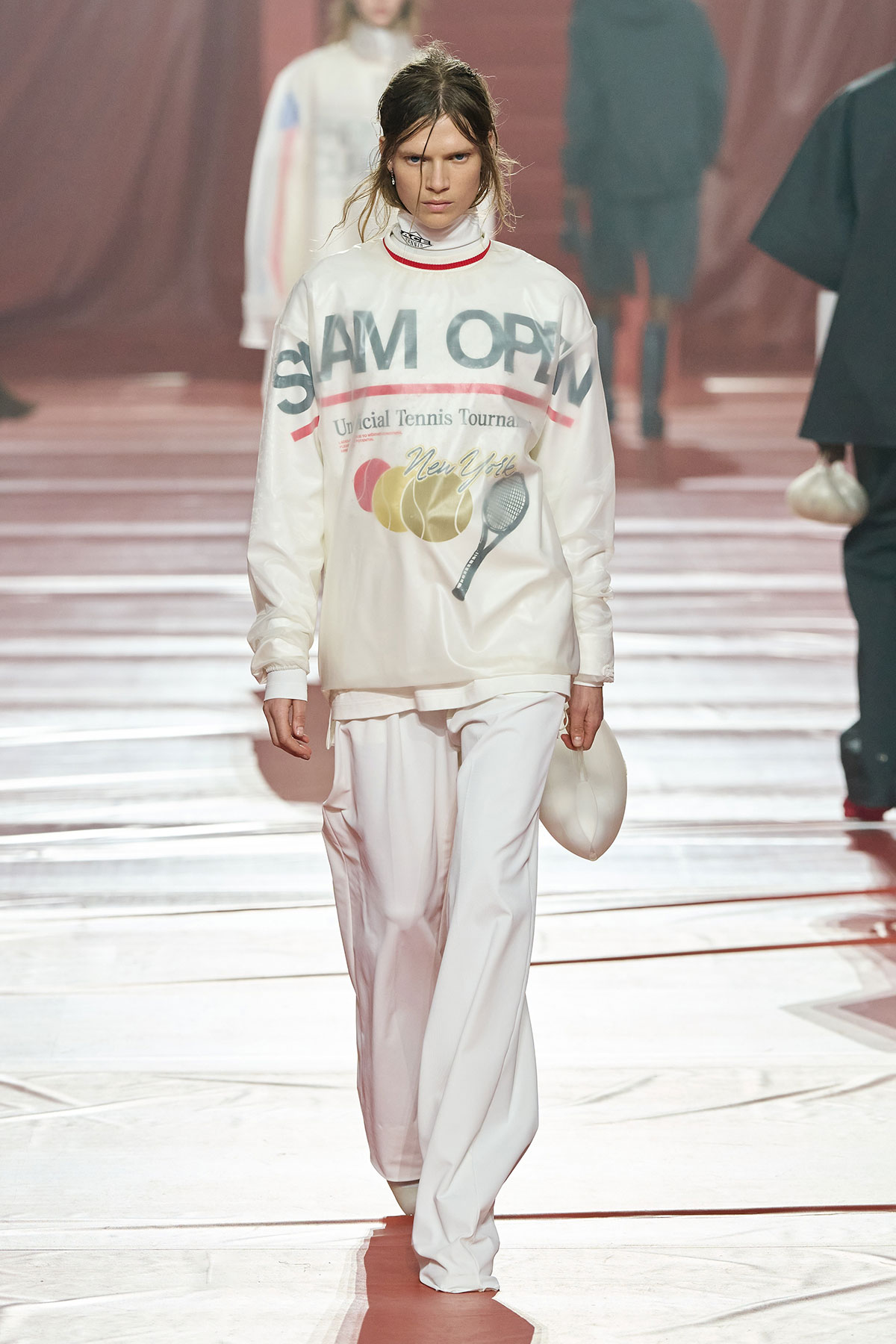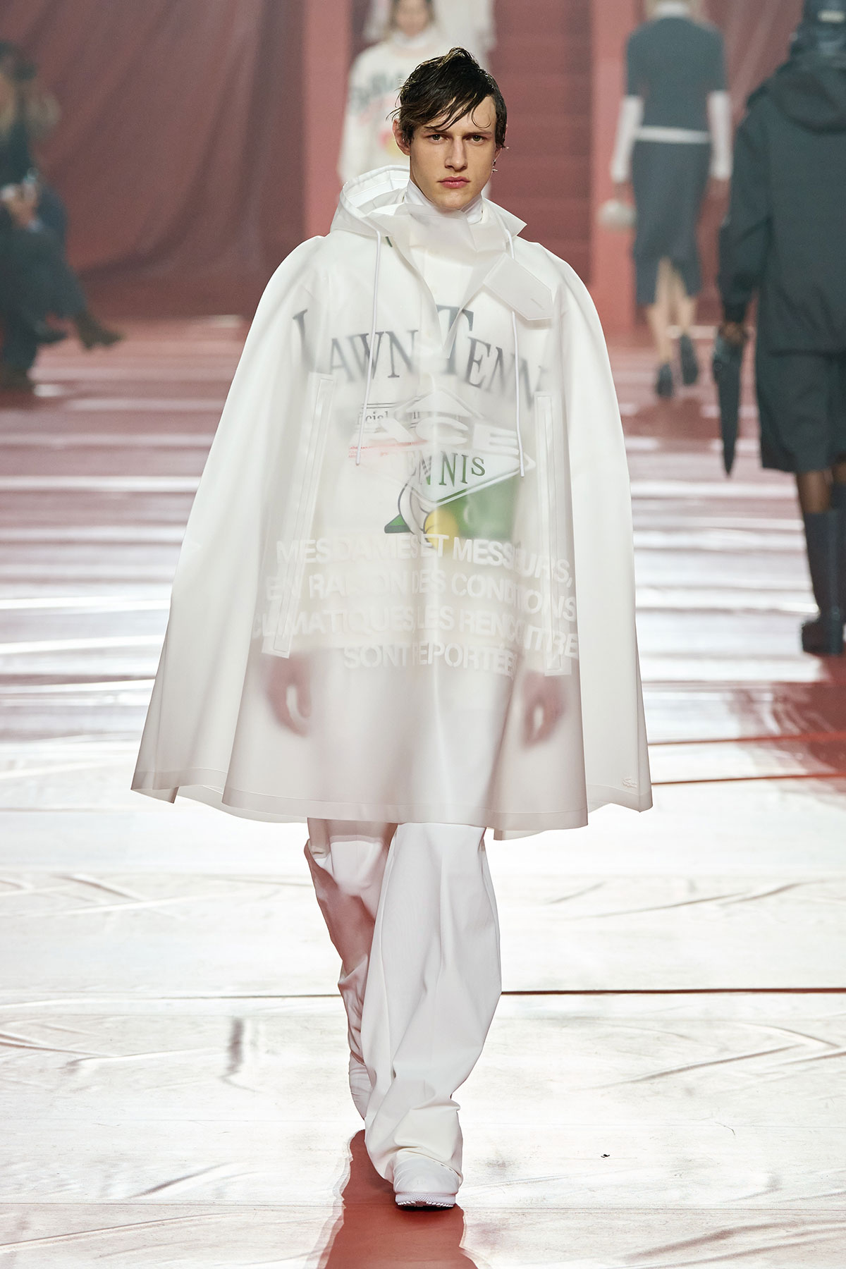 Tiếp nối là các trang phục thời trang thể thao đầy màu sắc quen thuộc của nhà Lacoste. Cuối cùng, kết lại show diễn là loạt áo mưa mờ đục, được thiết kế để chống lại những điều kiện thời tiết không khả quan. Chúng mang đến ý tưởng layer trang phục vừa thời thượng, vừa có tính ứng dụng cao.