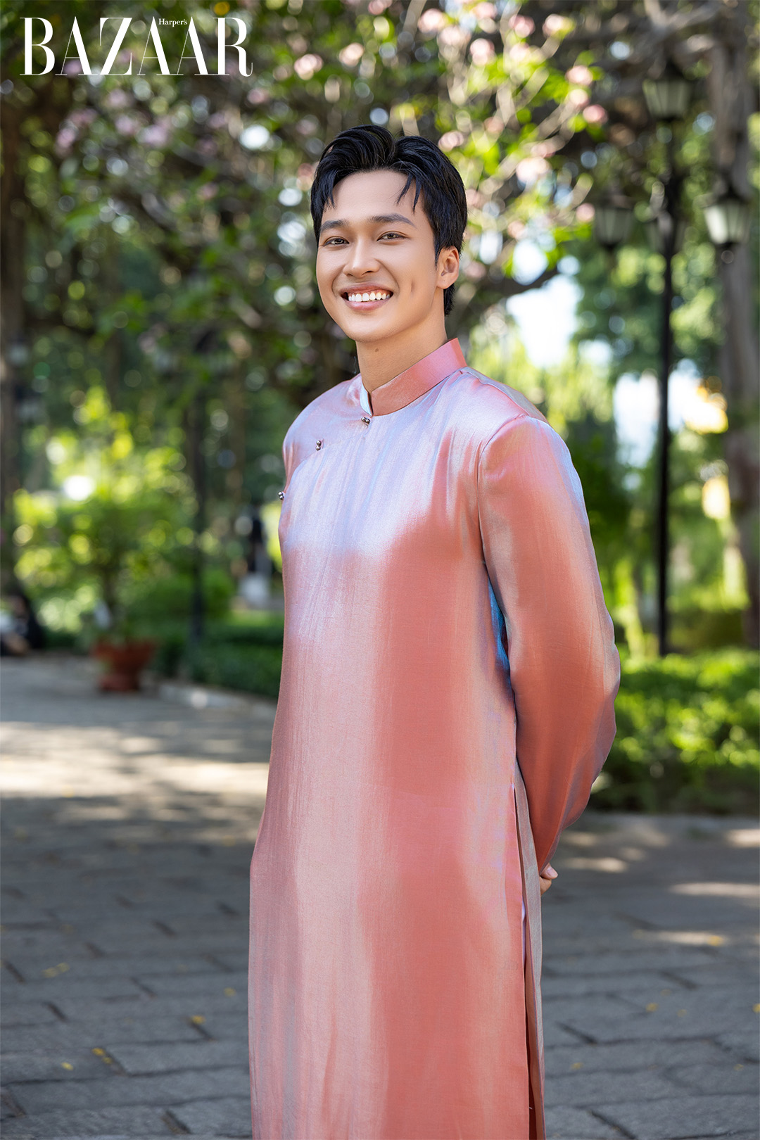 Tết Bính Ngọ năm nay, Lâm Thanh Nhã đồng hành cùng Fashion & Freedom trong bộ sưu tập áo dài nam Pride Vietnam.