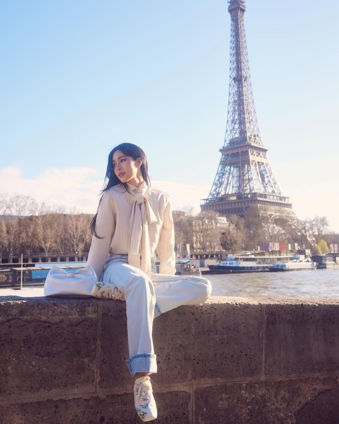 - Lingling Kwon dịu dàng bên bờ sông Seine tại Paris. Ảnh: linglingkwong