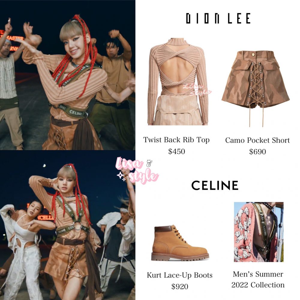 Chỉ có hai, ba bối cảnh cùng hai bộ trang phục, nhưng video vũ đạo của Money vô cùng đã mắt, đã tai. Đại sứ Celine cũng nhanh tay quảng bá cho thời trang của nhà mốt mà mình đại diện. Trong tạo hình trên, Lisa kết hợp cùng giày bốt màu nâu nhạt làm từ da bê cao cấp và phụ kiện từ bộ sưu tập thời trang nam Xuân Hè 2022 của Celine.