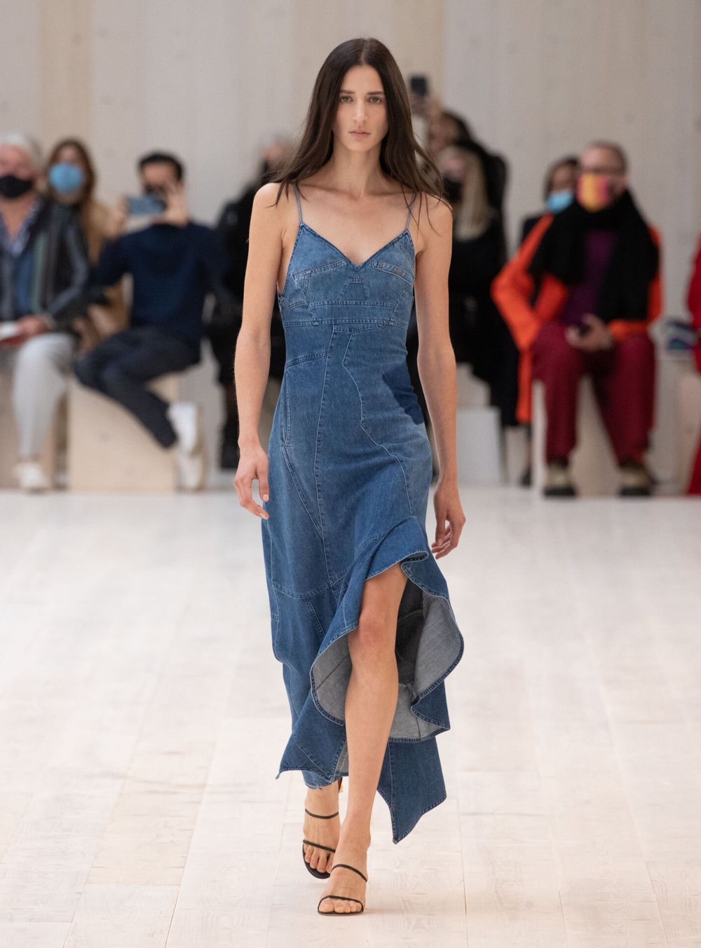 Show ra mắt bộ sưu tập Xuân Hè 2022 của nhà mốt Loewe diễn ra trong một không gian “trống”. Có nghĩa là bối cảnh show diễn hoàn toàn không có phông màn. Hay các chi tiết trang trí. Không có một khoảng trống nào để người xem phân tâm. Tất cả họ chỉ có thể tập trung nhìn ngắm trang phục.