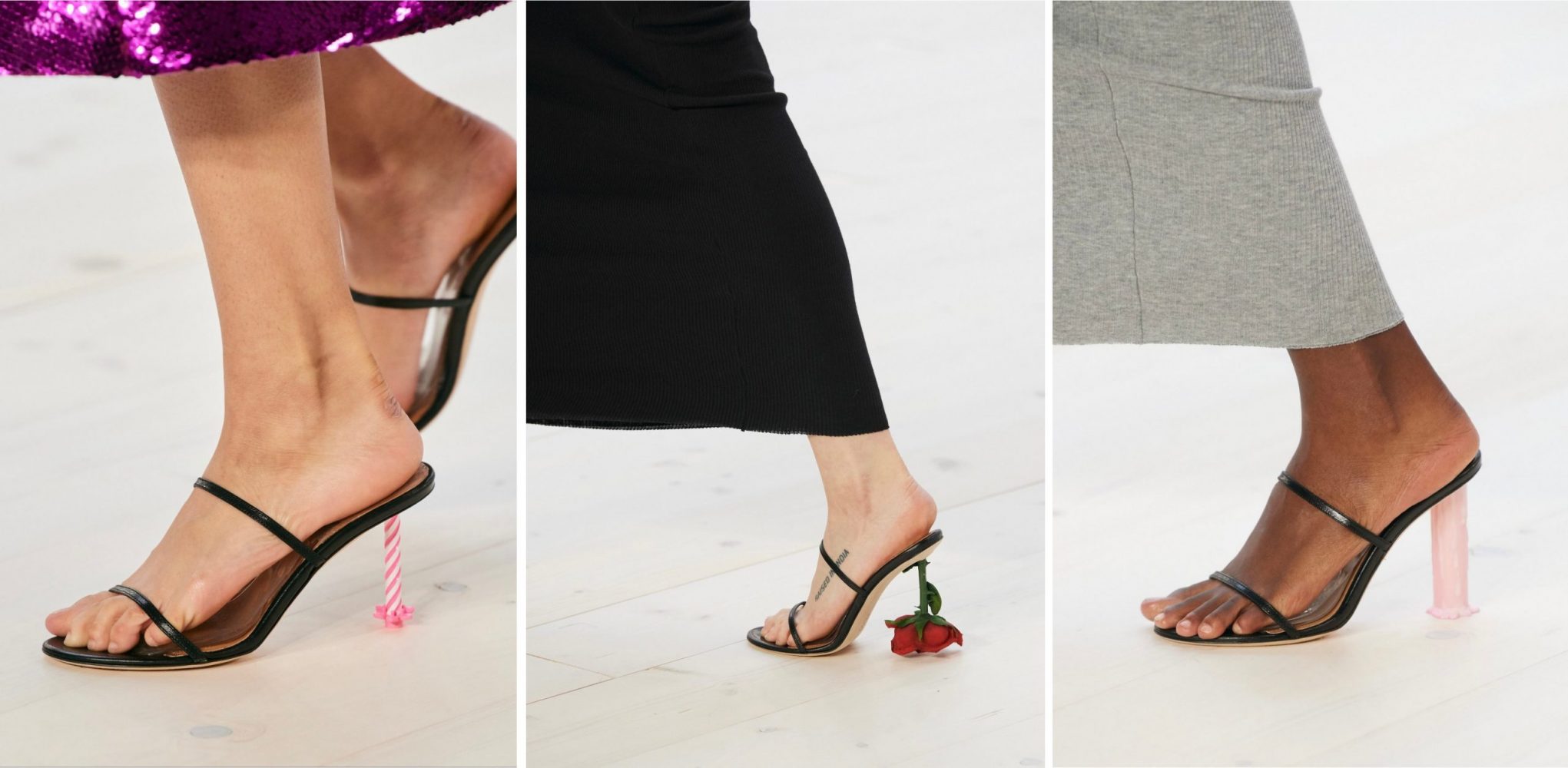 Giày buộc dây và giày cao gót có đế hình ngọn nến, lọ đựng nước sơn móng tay, hay một bánh xà phòng. Túi xách màu hoa oải hương hoặc đỏ được làm từ vải cứng làm gấu bông đồ chơi. Những thứ vốn chẳng liên quan gì nhau! Nhưng lại làm toát lên sự táo bạo và cuốn hút của bộ sưu tập. Có lẽ Jonathan Anderson đang muốn nói rằng, thế giới hiện tại đầy tính siêu thực. Và ông đã thử nghiệm với thời trang và phản ánh điều đó qua các thiết kế.