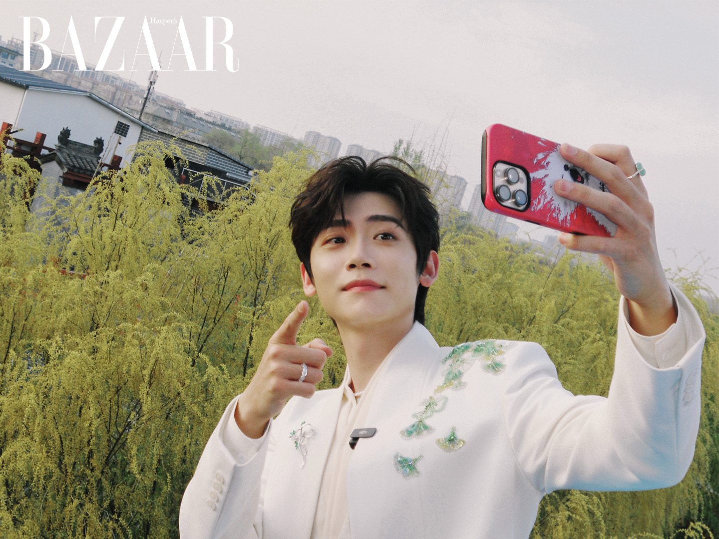 Khoảnh khắc đáng nhớ nhất là khi nam diễn viên cầm bó hoa xuất hiện trên chiếc thuyền hoa diễu hành qua khu vực sự kiện. Trong bộ vest cách tân mang hơi thở cổ phong, anh liên tục vẫy tay, tương tác nhiều góc để có thể hướng tới tất cả khán giả. Fan đứng kín bên bờ, trên cầu, điện thoại giơ cao để ghi hình lại sự kiện.
