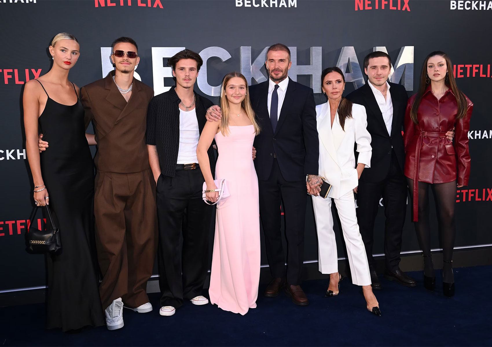 Gia đình Beckham ngày chưa mâu thuẫn, lục đục: Mọi người tề tựu tại buổi công chiếu phim tài liệu Beckham ở London, tháng 10/2023. Ảnh: Karwai Tang/WireImage/Getty Images