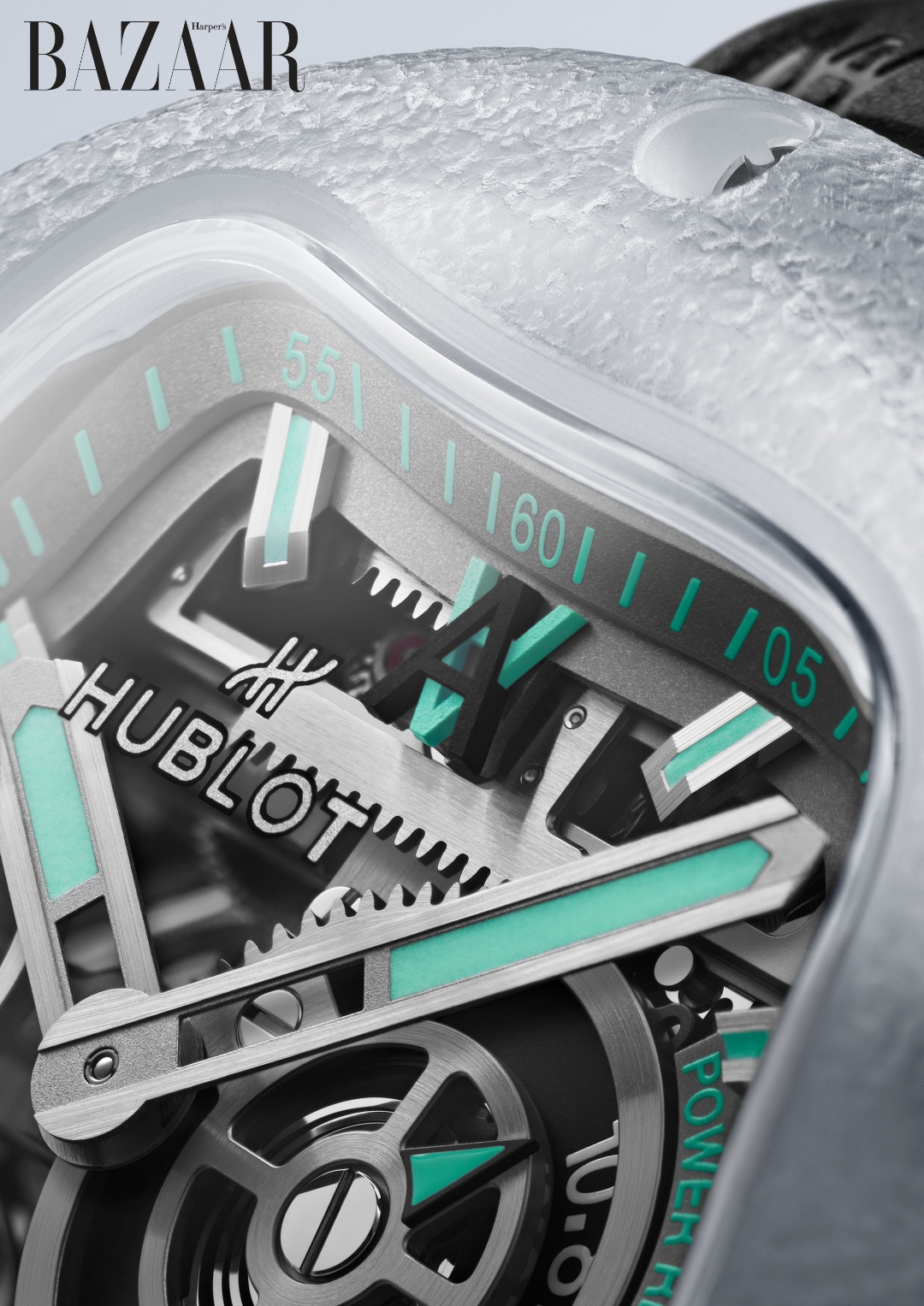 Siêu phẩm thời gian này lấy cảm hứng từ tinh thần vận động của nước, các hình dạng hữu cơ và tính trong suốt. Thiết kế là sự kết hợp hoàn hảo giữa triết lý “Art of Fusion” (nghệ thuật của sự hòa quyện) ở Hublot và tầm nhìn khảo cổ học giả tưởng độc đáo của Arsham, nơi anh tái hiện các vật thể đương đại như những hiện vật cổ đại, xóa nhòa ranh giới giữa quá khứ, hiện tại và tương lai.