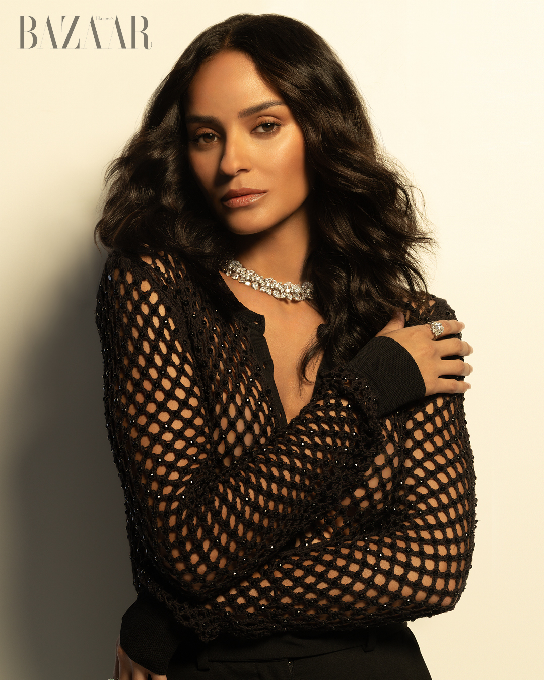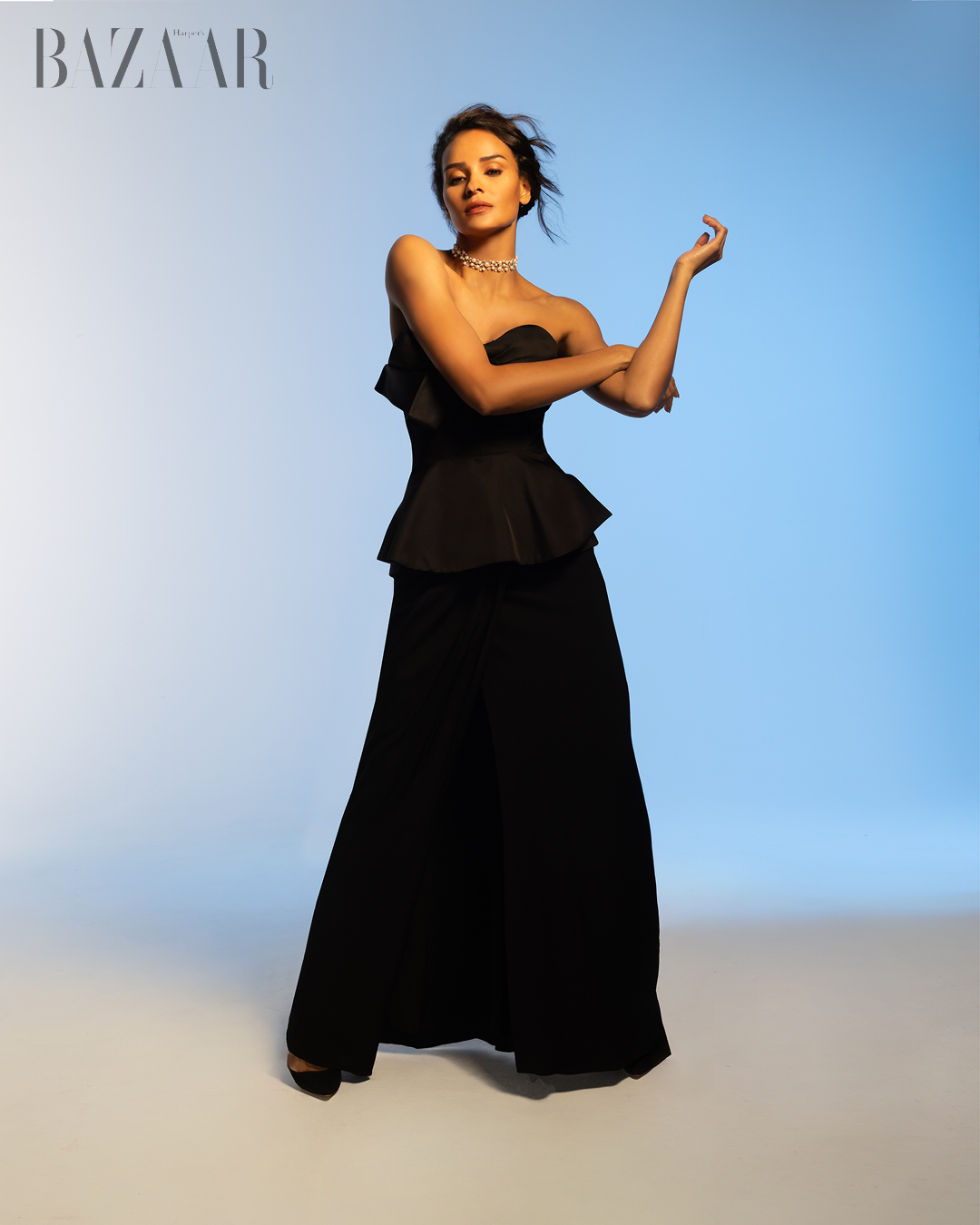 Áo: Diotima. Quần: Aiste Hong từ Lindsey Media. Giày: Christian Louboutin. Vòng cổ: Anayah từ D’Orazio World. Nhẫn: Anabela Chan từ D’Orazio World.