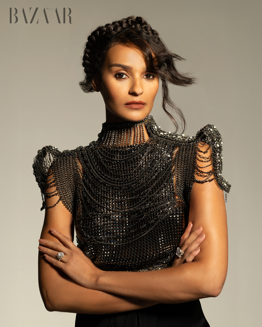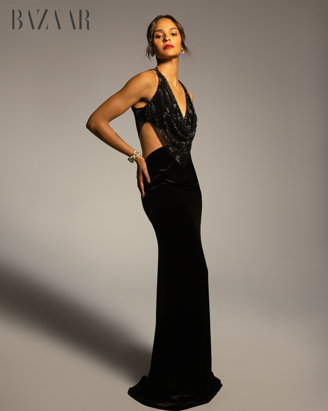 HBZVN: Màu bạc thường tượng trưng cho sức mạnh, sự bảo vệ và tính đương đại. Khi mặc màu bạc, nhất là khi chụp trang bìa này, chị thấy đó chỉ đơn giản là một tông màu, hay có ý nghĩa nào sâu sắc hơn về quyền lực và sự tự khẳng định?