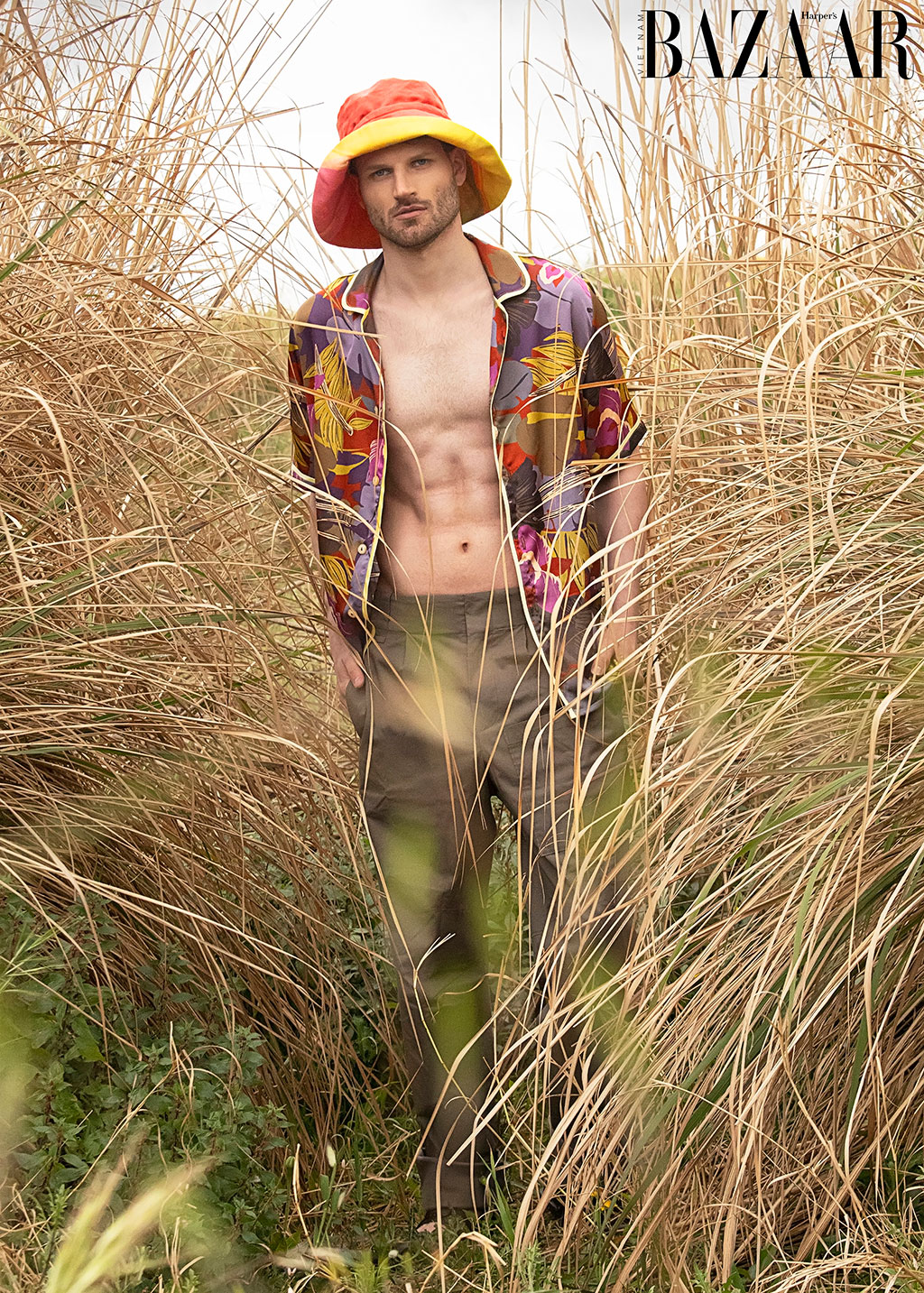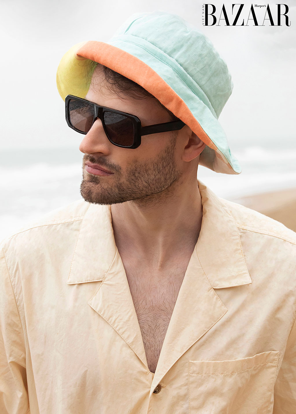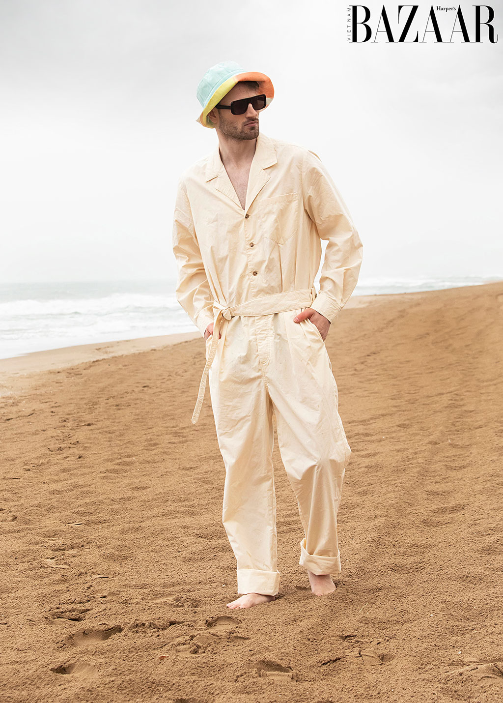 Sơ mi, LORENZO MARTINEZ. Quần, SALVATORE FERRAGAMO. Nón tai bèo, GINA CUSACHS. Giày, SALVATORE FERRAGAMO