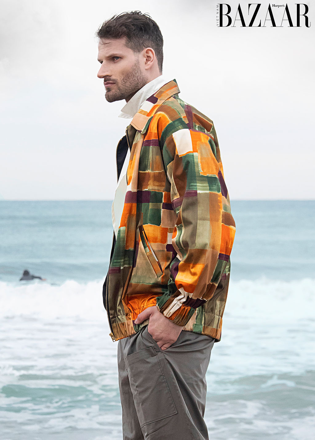 Sơ-mi, D THE BRAND. Áo khoác LORENZO MARTINEZ. Quần, SALVATORE FERRAGAMO. Giày, ZHOES