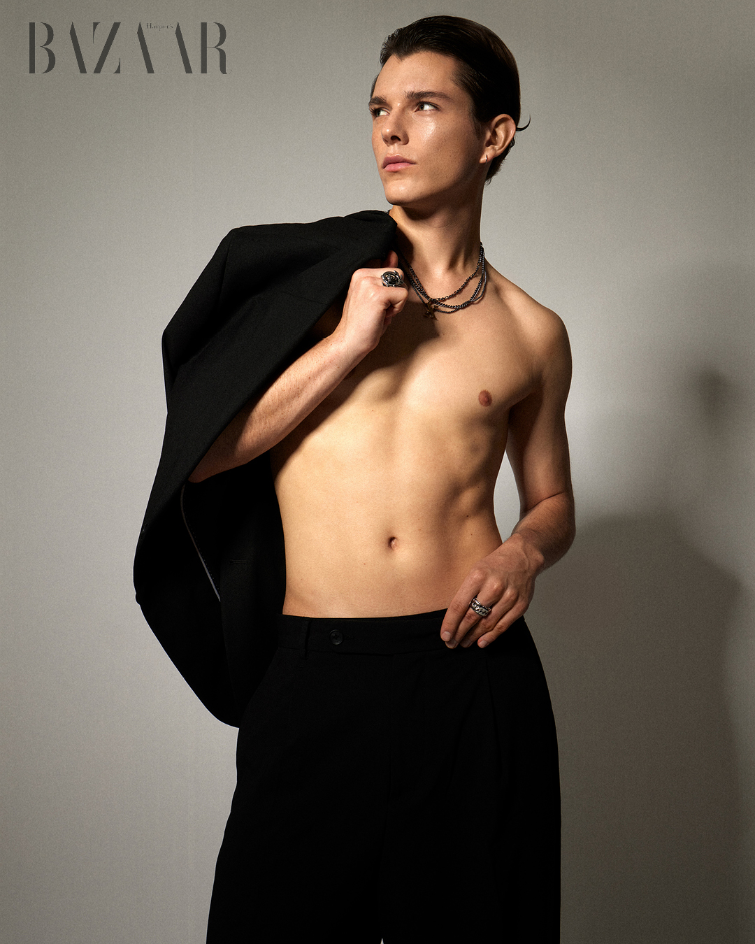 Jannik Richter has a really cool and effortless vibe. He knows how to switch it up, sometimes sharp and polished, other times more relaxed and natural. His poses feel confident but never forced, and there’s something about his gaze that pulls you in without trying too hard. That’s why photographer Sarah Engel describes her photo story as Soft Edges.