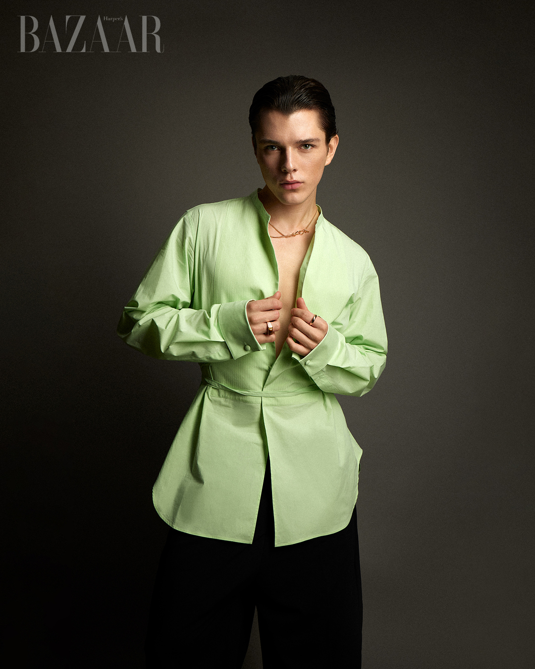 Sắc lạnh mà tinh tế, người mẫu Jannik Richter “chơi đùa” với ánh mắt, góc nghiêng, và cả bàn tay, để tạo nên những tư thế rất điện ảnh. Pose dáng tự nhiên, nhưng ánh mắt sâu thẳm như đang nói với người xem về một thế giới nội tâm phong phú hơn những gì thể hiện ra bên ngoài. Chính vì thế, nhiếp ảnh gia Sarah Engel đã đặt tên cho bộ ảnh là Những góc cạnh mềm mại.