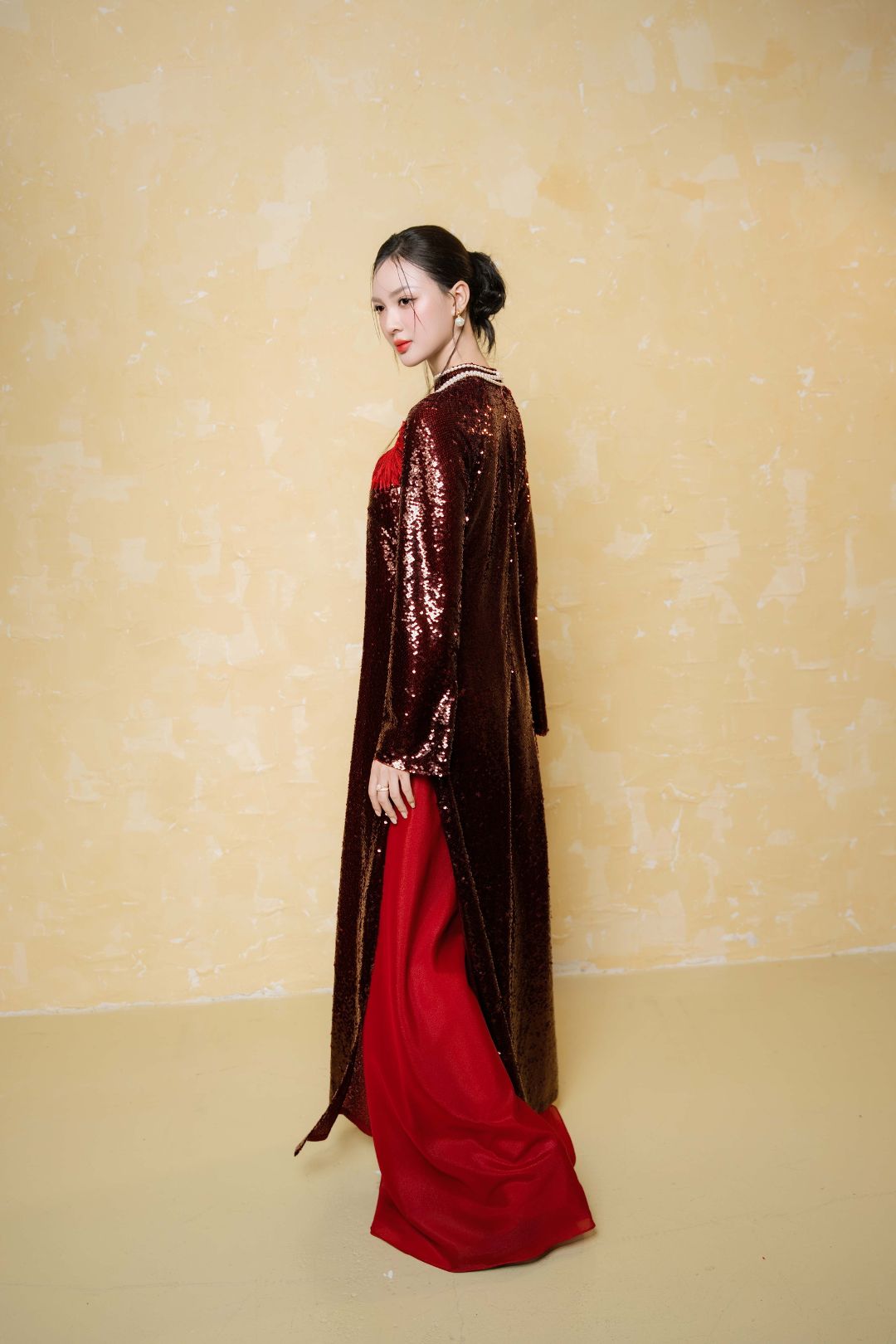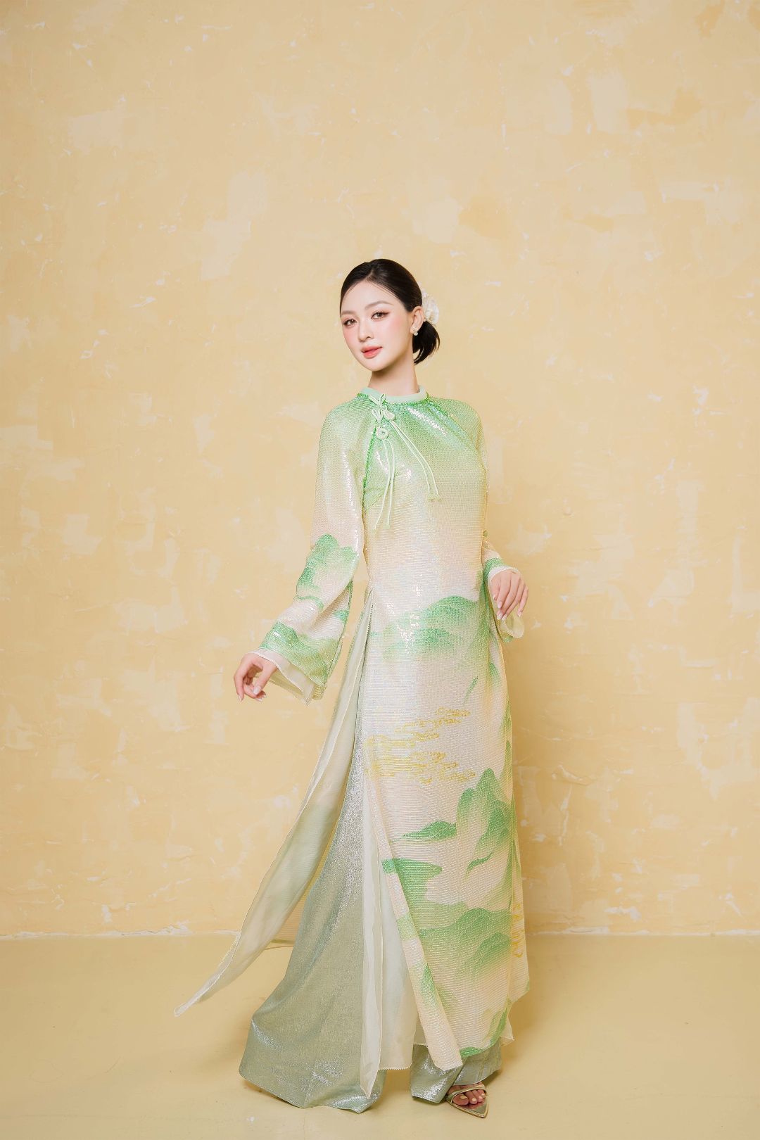 Từ những họa tiết cá chép hóa rồng cho đến những bó hoa xuân được đính kết thủ công, mỗi chi tiết đều mang ý nghĩa về sự thịnh vượng và may mắn. Các phom dáng được tinh chỉnh để ôm lấy đường cong cơ thể một cách vừa vặn, tôn vinh nét đẹp Á Đông nhưng không gây gò bó, phù hợp với nhịp sống năng động hiện nay.